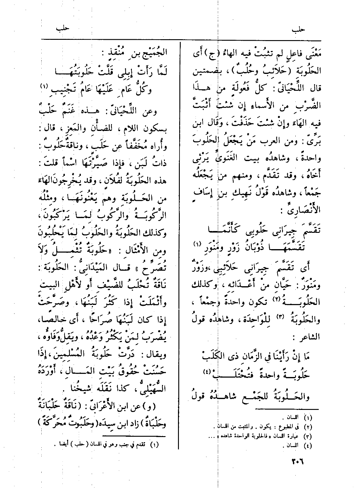 أَي تَقَسَّمَ جِيرَانِي حَلاَئِبِي، وزَوْرٌ ومَنْوَرٌ: حَيَّانِ منْ أَعْدَائِهِ، وَكَذَلِكَ الحَلُوبَةُ تكون وَاحِدَة وجمْعاً، والحَلُوبَةُ لِلْوَاحِدَة، وشاهدُه قولُ الشَّاعِر: