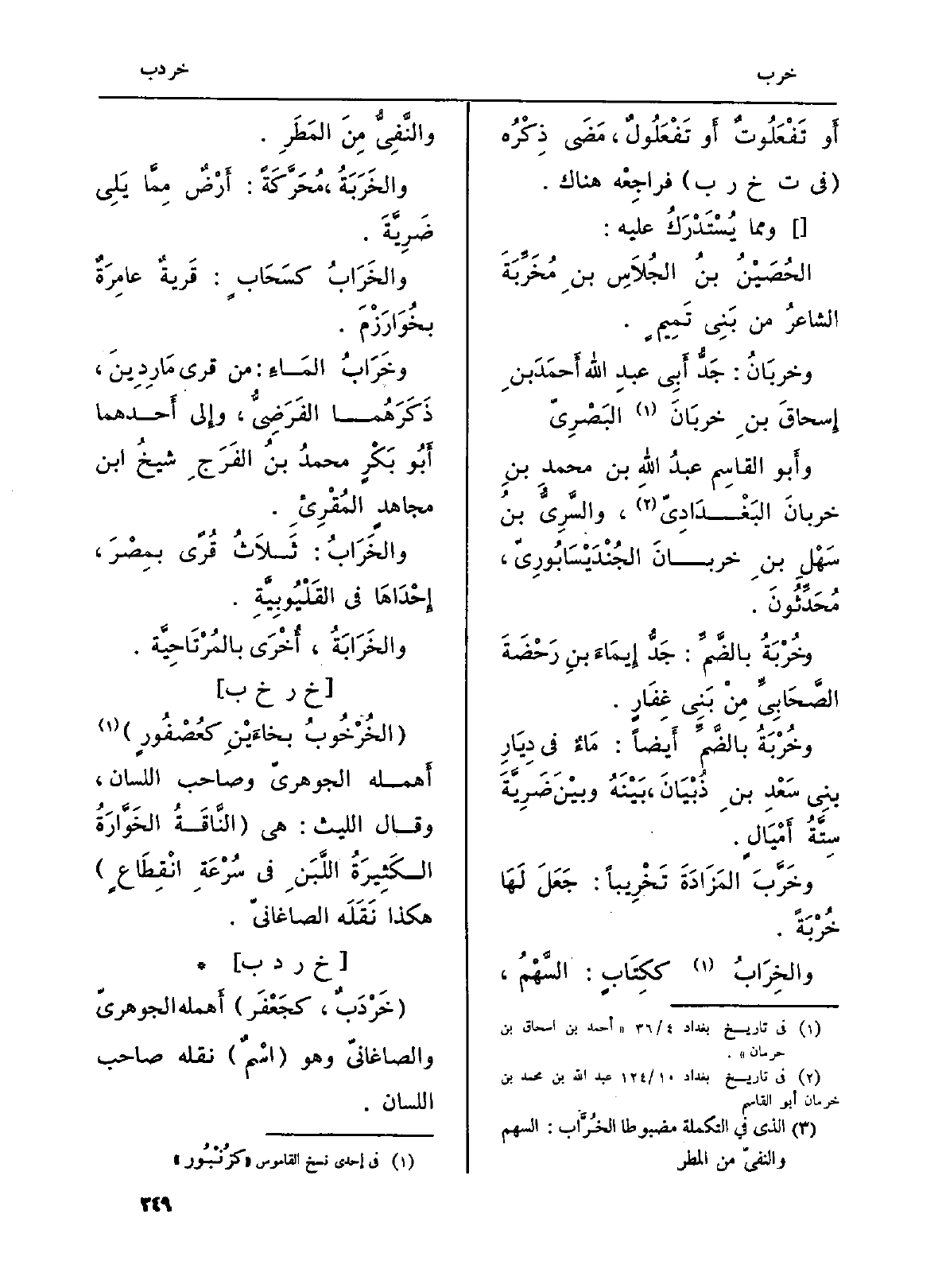 وخَرَابُ المَاءِ: من قرى مَارِدِينَ، ذَكَرَهُما الفَرَضِيُّ، وإِلى أَحدهما أَبُو بَكْرٍ محمدُ بنُ الفَرَجِ شيخُ ابْن مجاهدٍ المُقْرِىءِ.