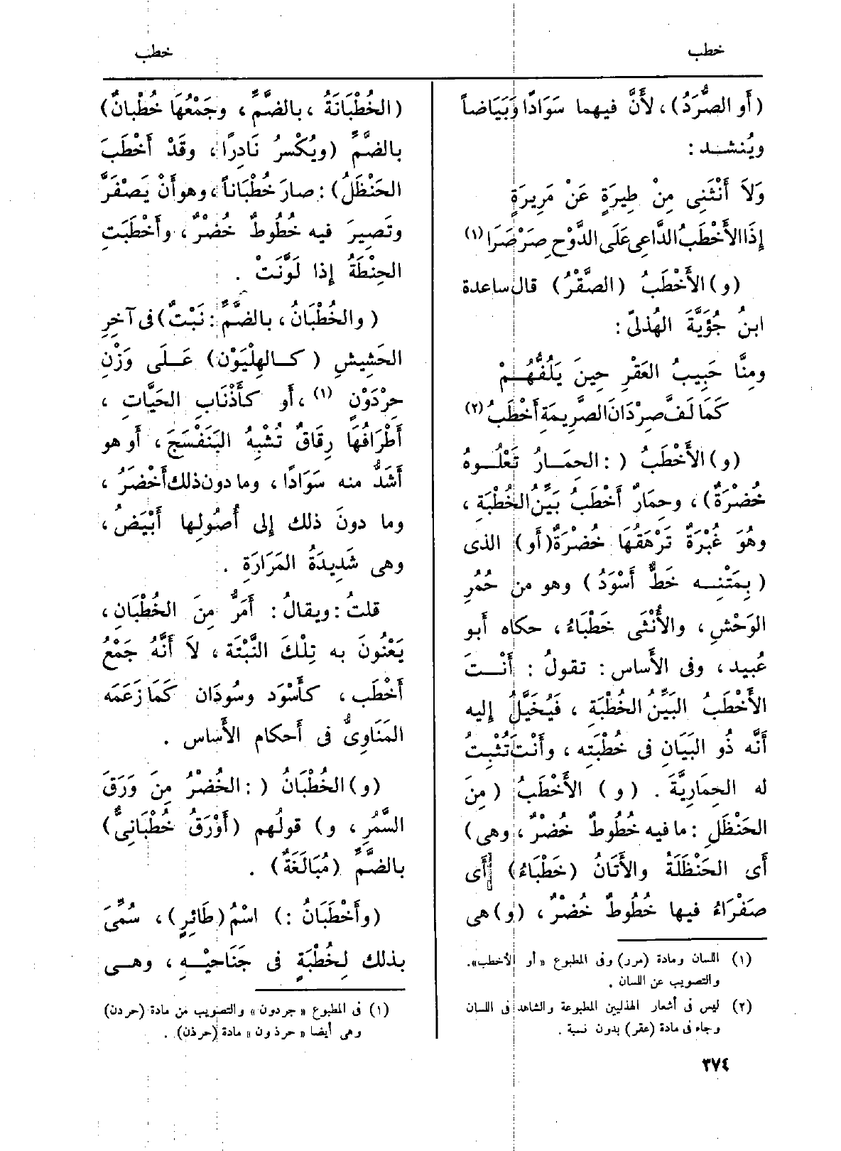 قلتُ: ويقالُ: أَمَرُّ مِنَ الخُطْبَانِ، يَعْنُونَ بِهِ تُلْكَ النَّبْتَة، لاَ أَنَّهُ جَمْعُ أَخْطَب، كأَسْوَد وسُودَان كَمَا زَعَمَه المَنَاوِيُّ فِي أَحكام الأَساس.