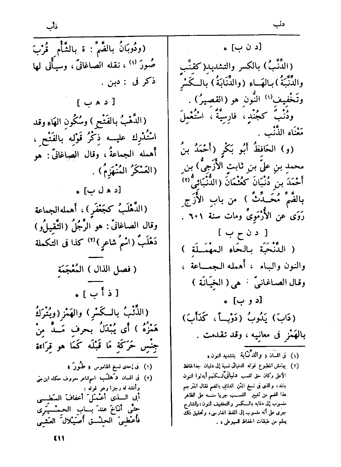 ودُنْبٌ كجُنْدٍ، فارِسِيَّةٌ، اسْتُعْمِلَ مَعْنَاهُ الذَّنْبُ.