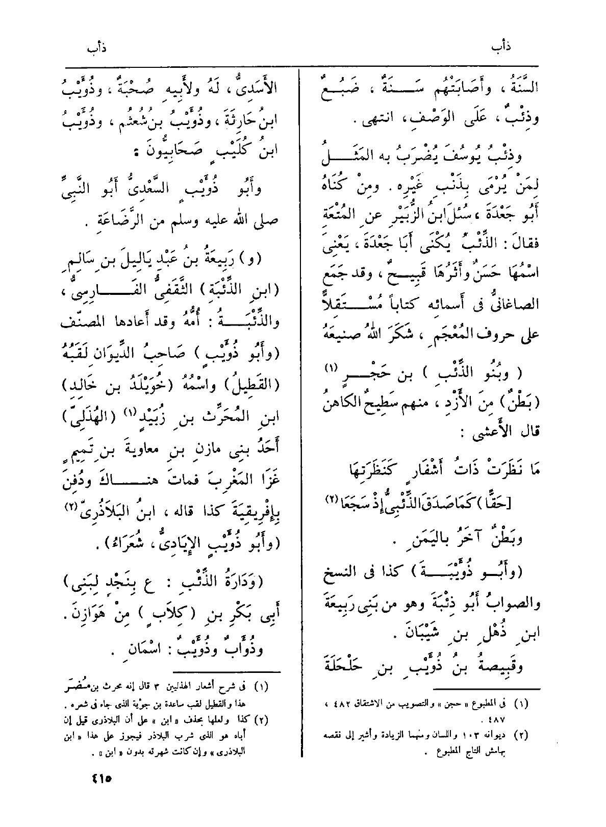 (وأَبُو} ذُؤَيْبَةَ) كَذَا فِي (النّسخ) والصوابُ أَبُو {ذِئْبَةَ وَهُوَ من بَنِي رَبِيعَةَ بنِ ذُهْلِ بنِ شَيْبَانَ.