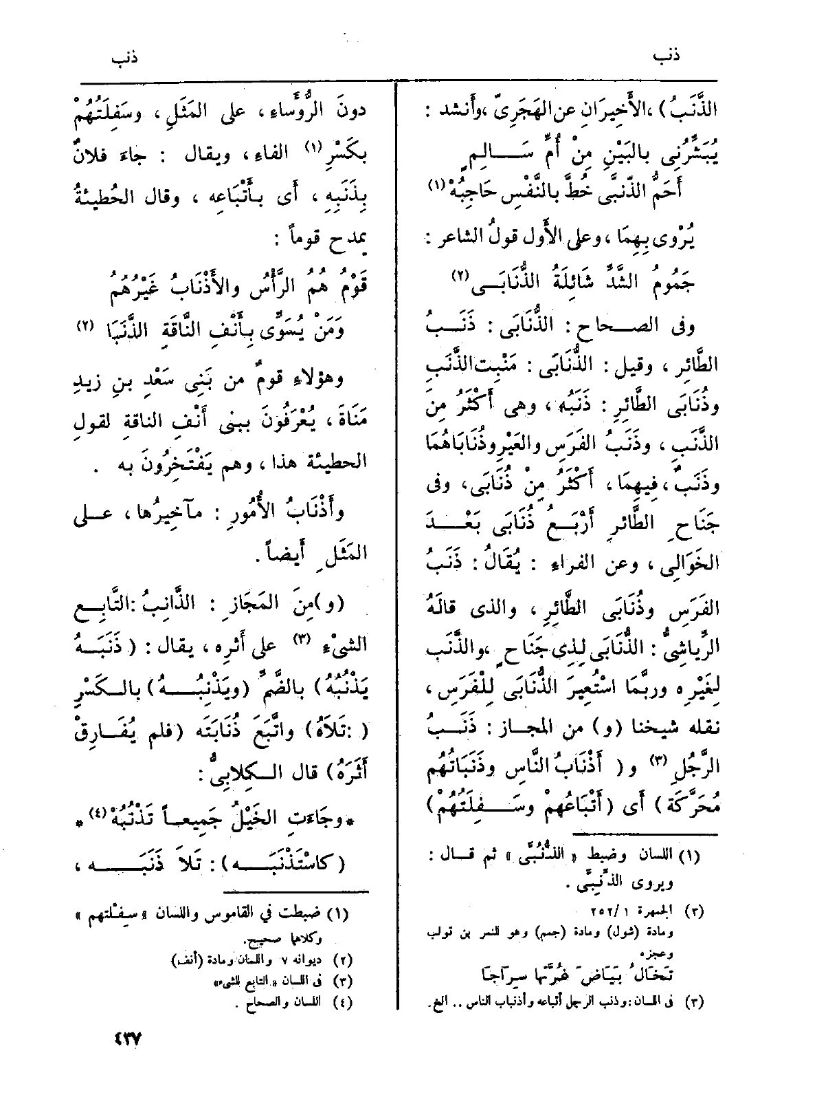 الذَّنَبُ) ، الأَخِيرَانِ عَن الهَجَرِيّ، وأَنشد: