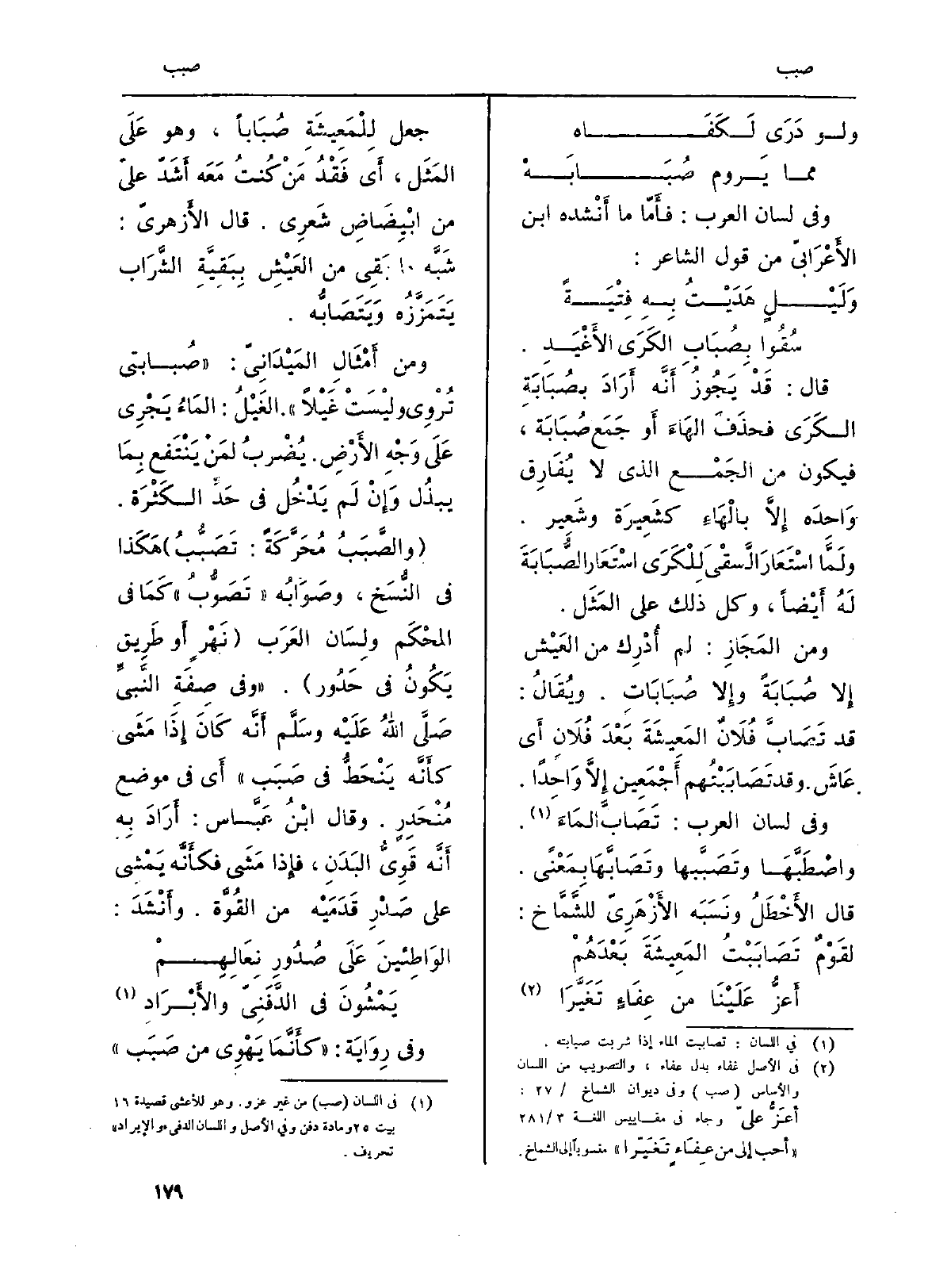 وَفِي لِسَان الْعَرَب:} تَصَابَّ المَاءَ. {واصْطَبَّهَا} وتَصَبَّبها وتَصَابَّهَا بِمَعْنًى. قَالَ الأَخْطَلُ ونَسَبَه الأَزْهَرِيّ للشَّمَّاخ: