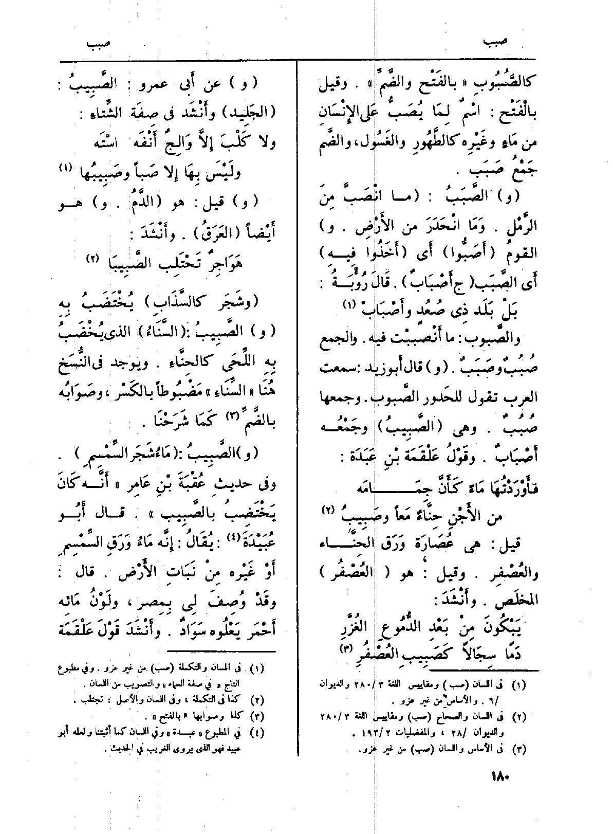 ولَيْسَ بِهَا إِلا {صَباً} وصَبِيبُها