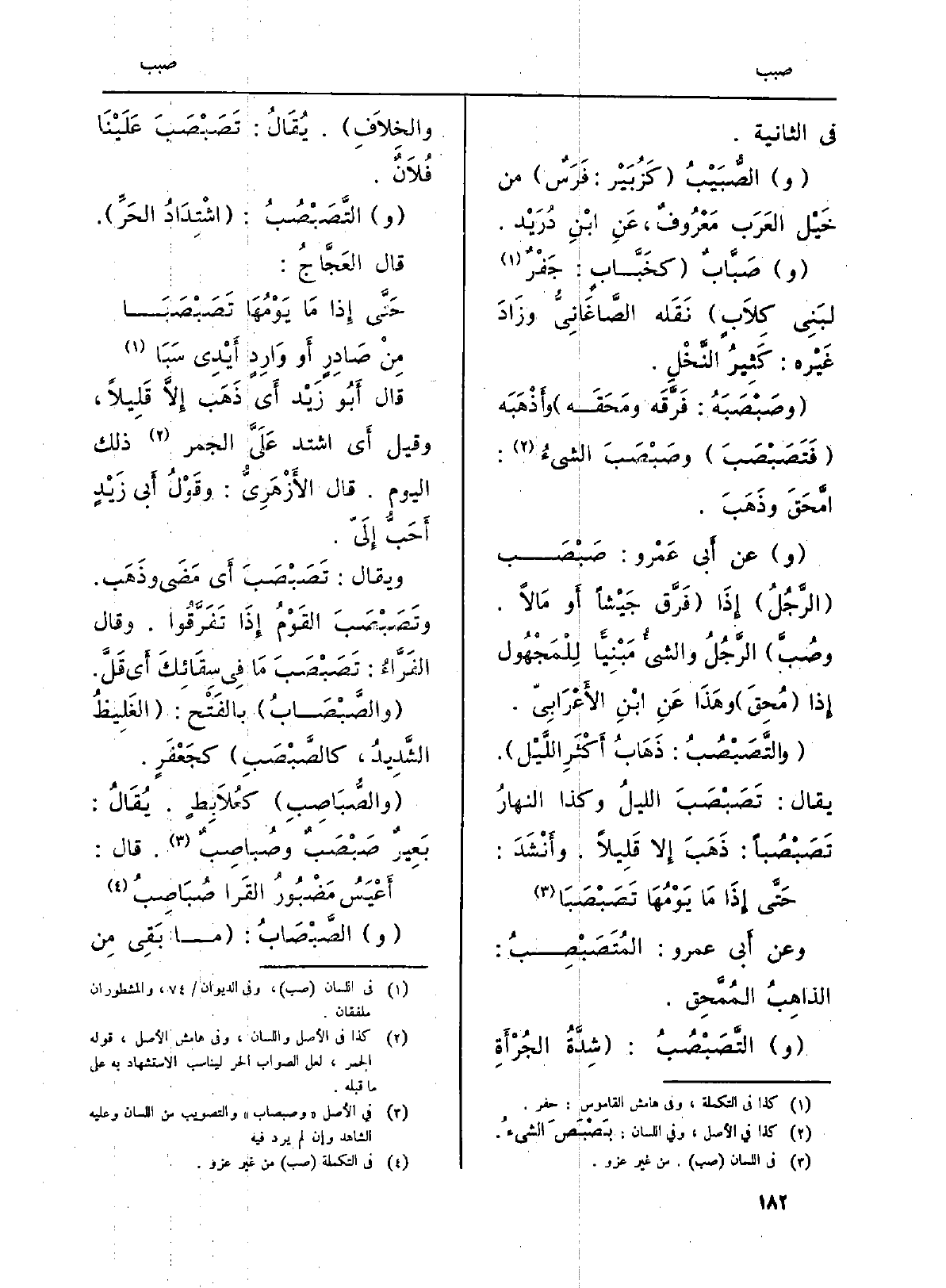 وَعَن أَبي عَمْرو:} المُتَصَبْصِبُ: الذاهِبُ المُمَّحِق.