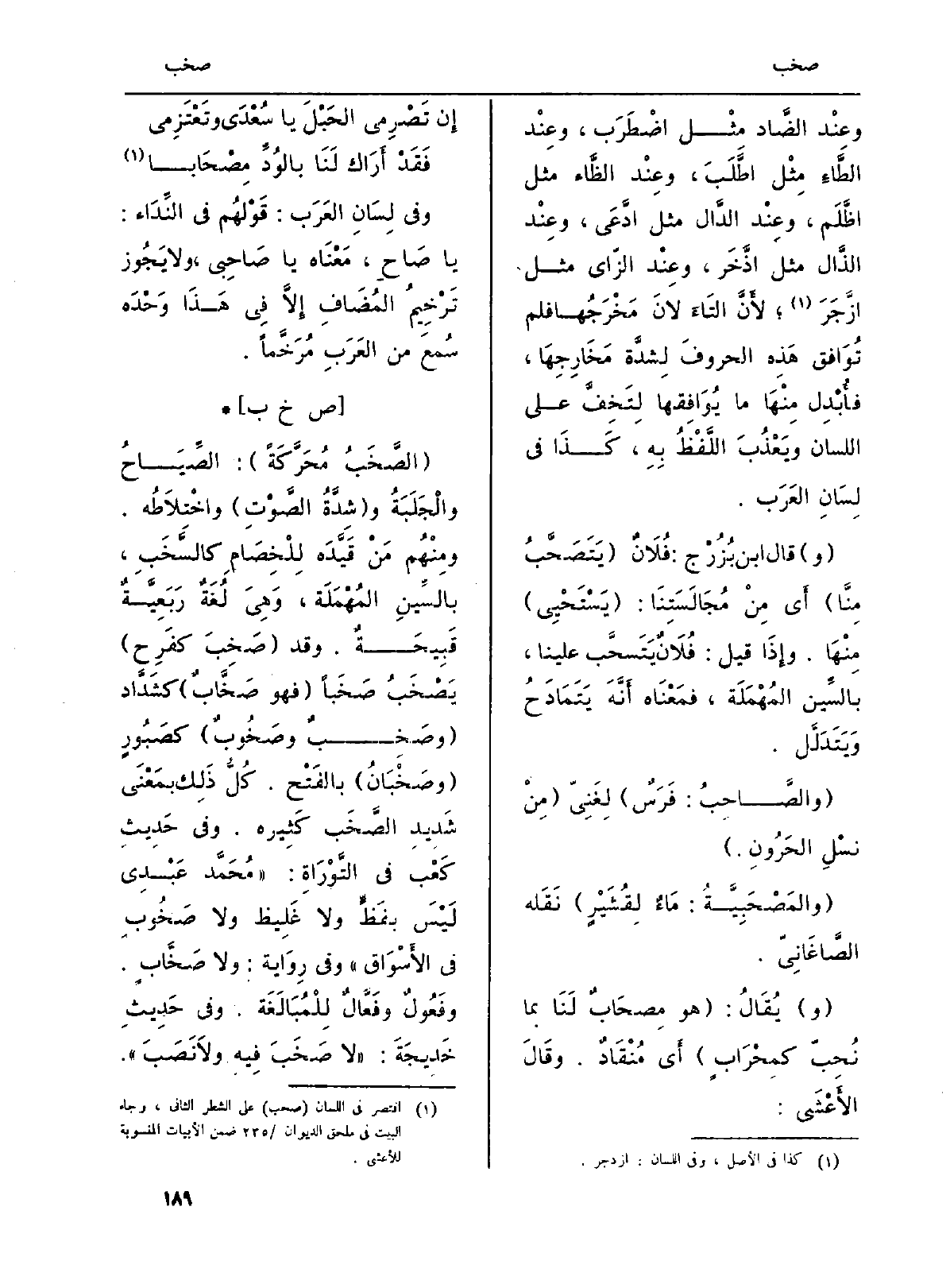 وَفِي لِسَانِ العَرَب: قَوْلهُم فِي النِّدَاء: يَا صَاحِ، مَعْنَاه يَا صَاحِبي، وَلَا يَجُوز تَرْخِيمُ المُضَافِ إِلَّا فِي هَذَا وَحْدَه سُمعَ من العَرَبِ مُرَخَّماً.