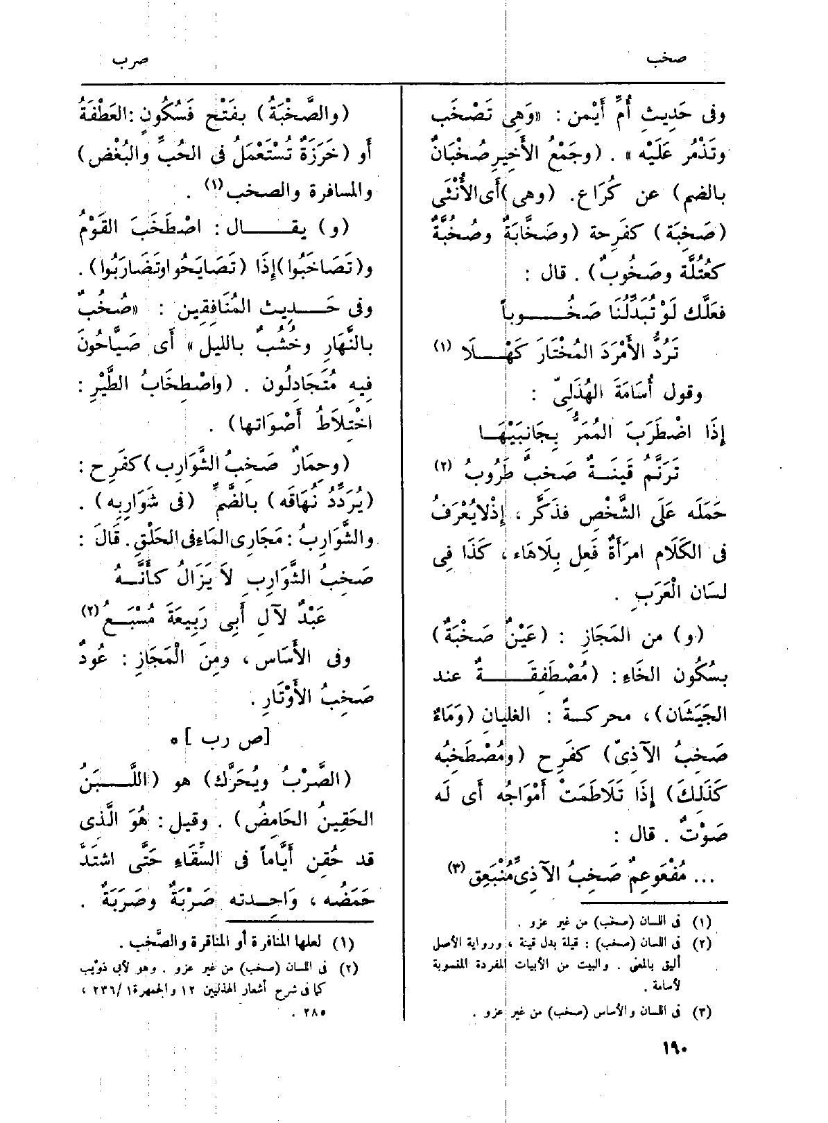 وَفِي حَدِيثِ أُمِّ أَيْمن: (وَهِي تَصْخَب وتذْمُر عَلَيْه) . (وجَمْعُ الأَخِير صُخْبَانٌ بِالضَّمِّ) عَن كُرَاع. (وَهِي) أَي الأُنْثَى (صَخِبَة) كفَرِحة (وصَخَّابَةٌ وصُخْبَّةٌ كعُتُلَّة وصَخُوبٌ) . قَالَ: