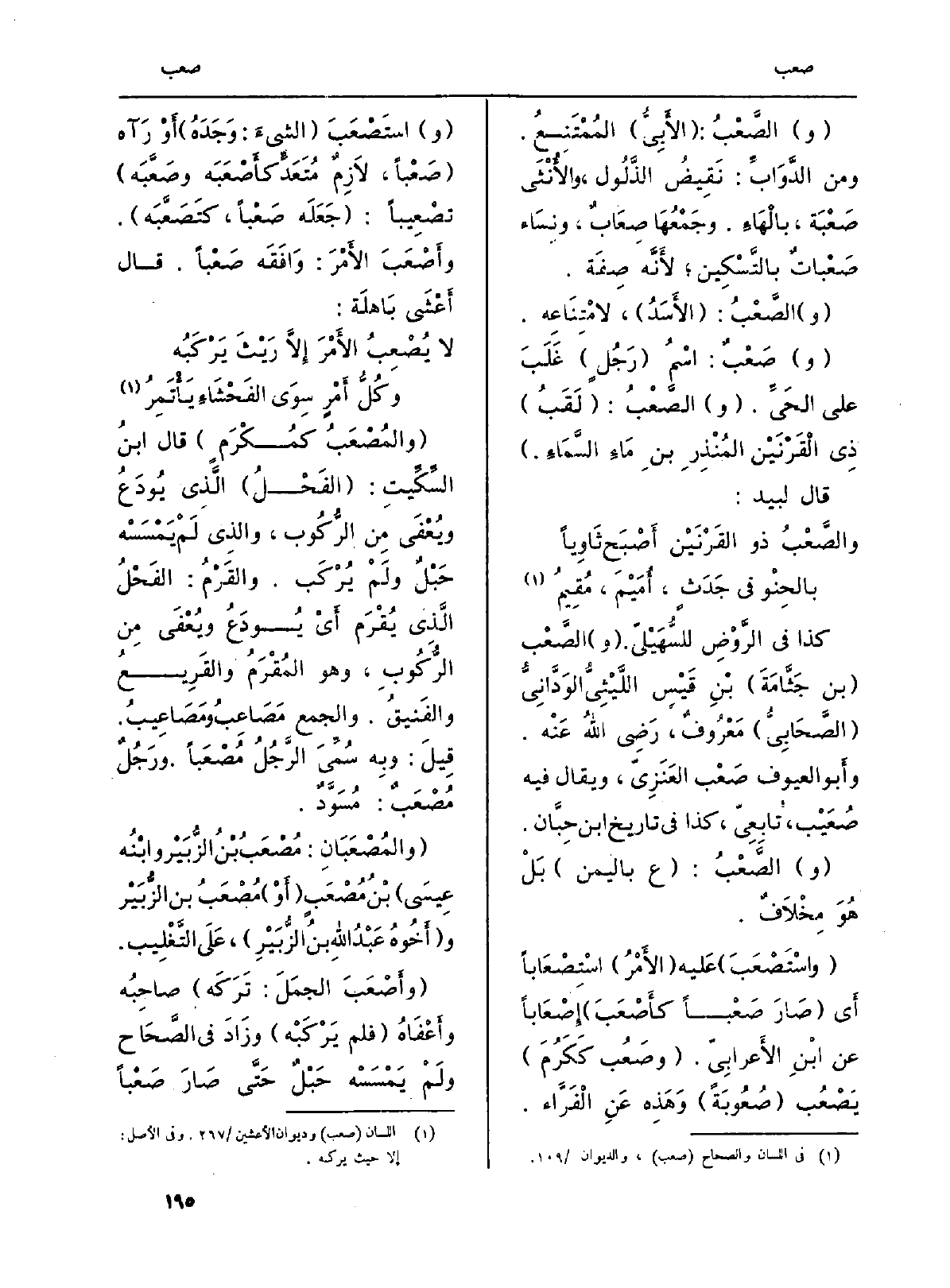 (واسْتَصْعَبَ) عَليه (الأَمْرُ) اسْتِصْعَاباً أَي (صَارَ صَعْباً كأَصْعَبَ) إِصْعَاباً عَن ابْنِ الأَعرابِيّ. (وصَعُب كَكَرُمَ) يَصْعُب (صُعُوبَةً) وَهَذِه عَنِ الْفَرَّاء. (و) استَصْعَبَ (الشيءَ: وَجَدَهُ) أَوْ رَآه (صَعْباً، لَازِمٌ مُتَعَدَ كأَصْعَبَه وصَعَّبَه) تصْعِيباً: (جَعَلَه صَعْباً، كتَصَعَّبَه) . وأَصْعَبَ الأَمْرَ: وَافَقَه صَعْباً. قَالَ أَعْشَى بَاهلَة: