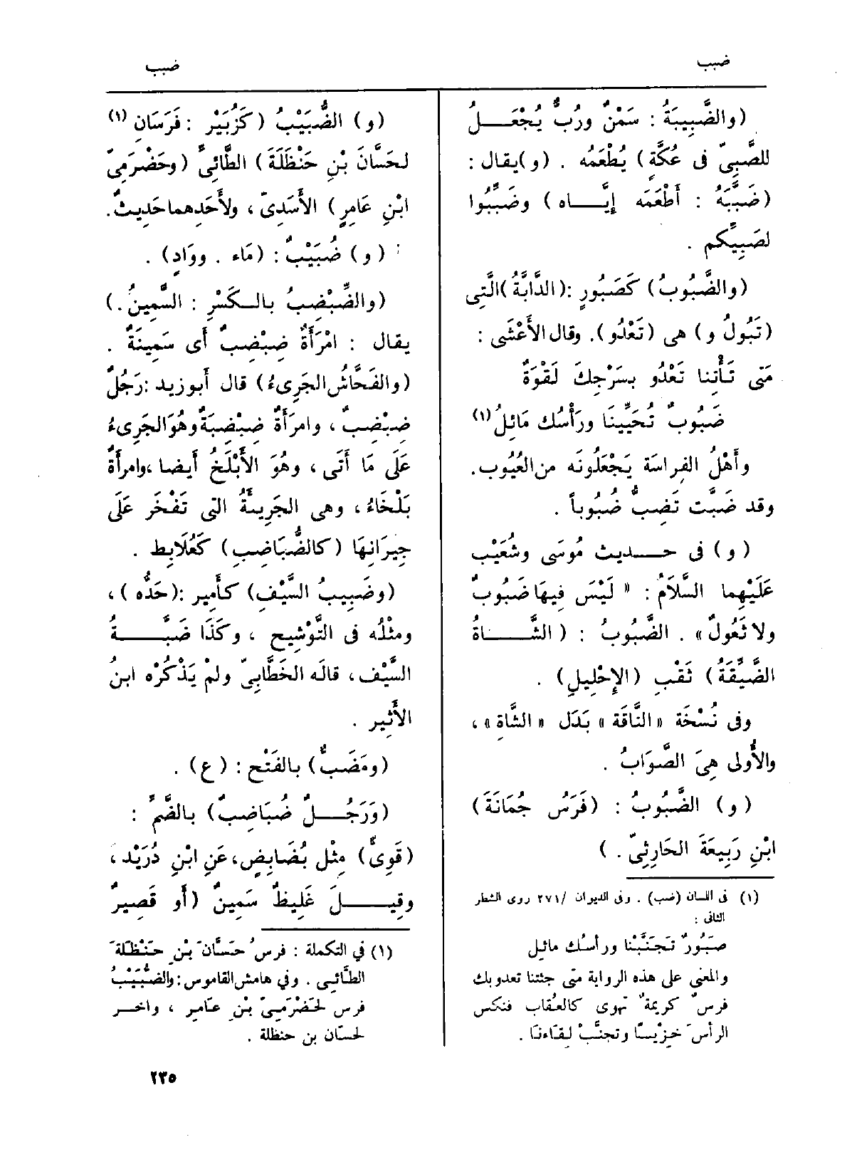وأَهْلُ الفِراسَة يَجْعَلُونَه من العُيُوب. وَقد} ضَبَّت {تضِبُّ} ضُبوباً.