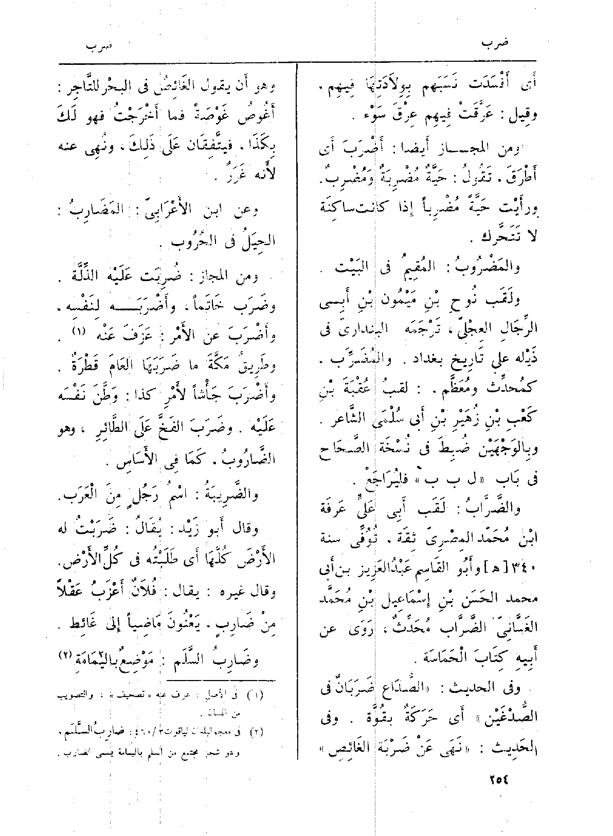 والضَّرَّابُ: لَقَب أَبِي عَليَ عَرفَة بْن مُحَمّد المِصْرِيّ ثِقَة، تُوُفِّي سنة 340 هـ وأَبُو القَاسِم عَبْدُ العَزِيز بن أَبي مُحَمَّد الحَسَن بْنِ إِسْمَاعِيل بْنِ مُحَمَّد الغَسَّانِيّ الضَّرَّاب مُحَدِّثٌ، رَوَى عَن أَبِيهِ كِتَابَ الْحَمَاسَة.