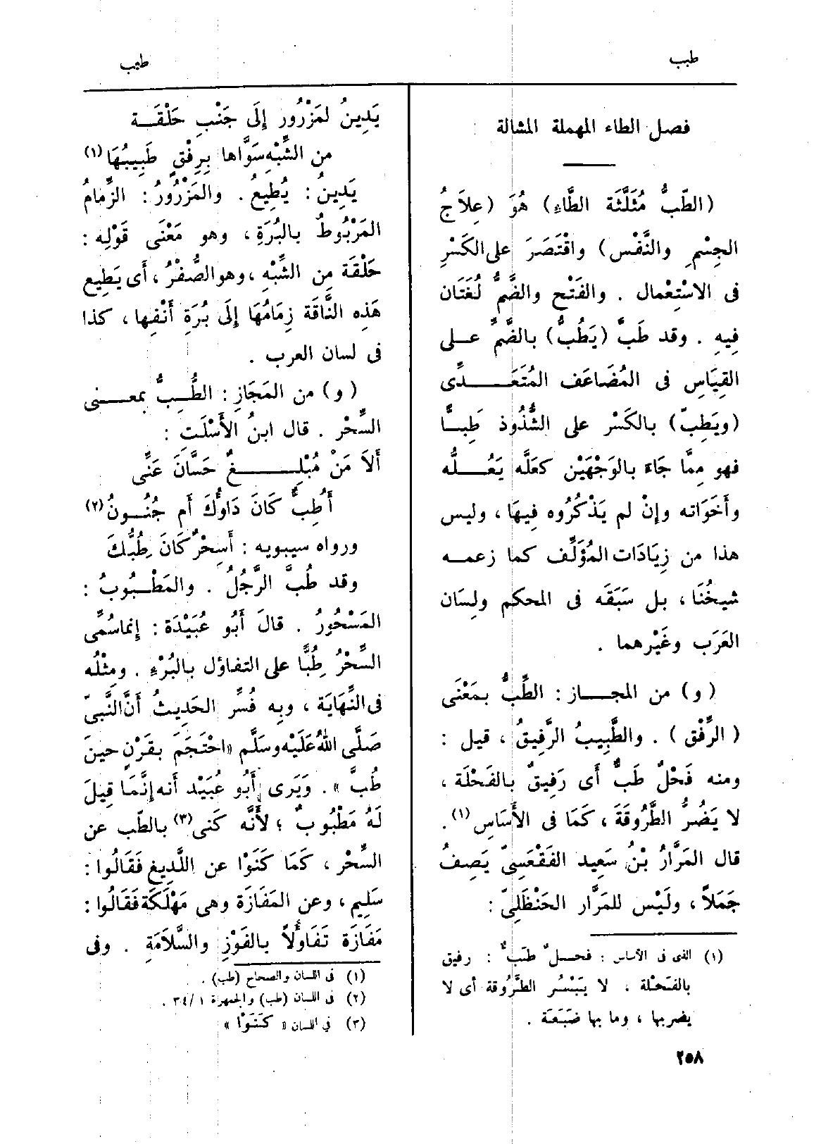 (و) مِنَ المَجَازِ: الطُّبُّ بِمَعْنى السِّحْرِ. قَالَ ابنُ لأَسْلَتِ:
