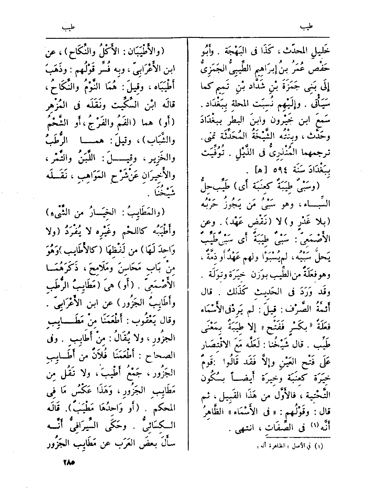 (} والأَطْيَبَان: الأَكْلُ والنِّكَاح) ، عَن ابْن الأَعْرَابِيّ، وَبِه فُسِّر قَوْلُهم: وذَهَبَ {أَطْيَبَاه، وقِيلَ: هُمَا النَّوْمُ والنِّكَاحُ، قالَه ابْن السِّكِّيت ونَقَلَه فِي المُزْهِر (أَو) هما (الفَمُ والفَرْجُ، أَو الشَّحْمُ والشَّبَاب) ، وقيلَ: هما الرُّطَبُ والخَزِير، وقِيلَ: اللَّبَنُ والتَّمْر، والأَخِيرَانِ عَنْ شَرْحِ المَوَاهِبِ، نَقَلَه شَيْخُنَا.