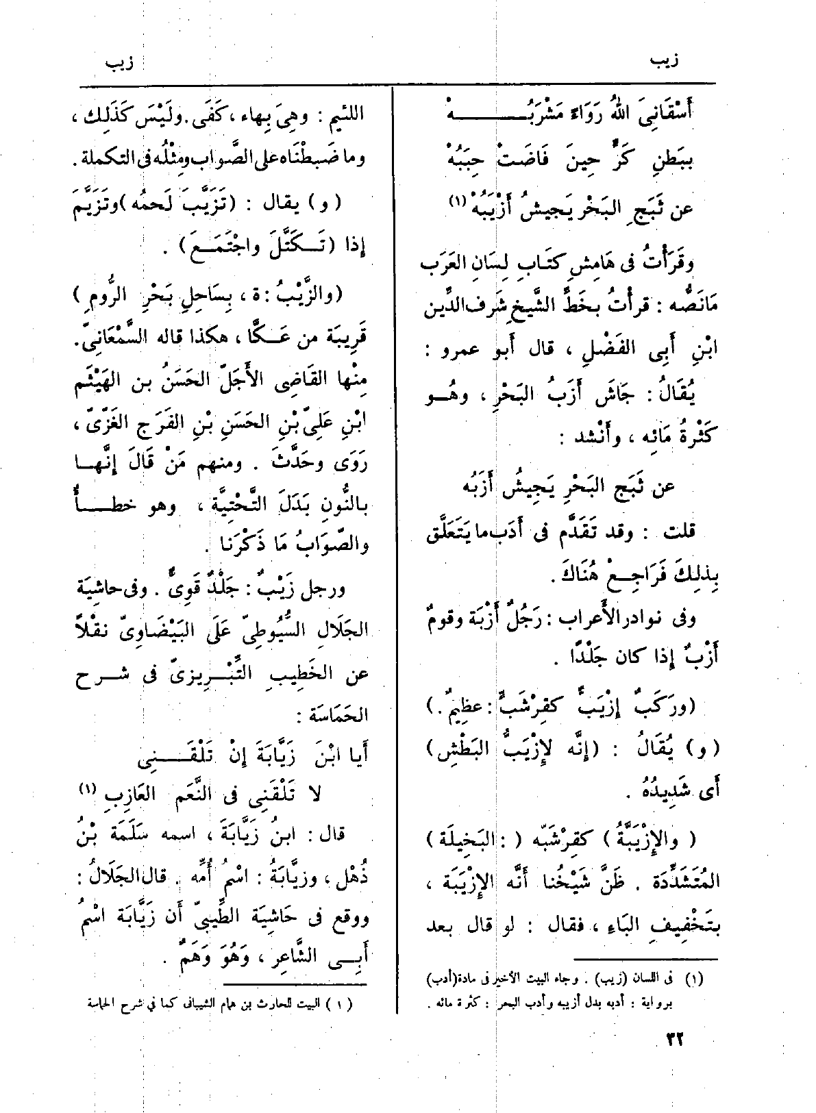 وقَرَأْتُ فِي هَامِشِ كتَابِ لِسَانِ العَرَب مَا نَصُّه: قرأْتُ بخَذِّ الشَّيخِ شَرف الدِّين بْنِ أَبِي الفَضْلِ، قَالَ أَبو عَمْرو: