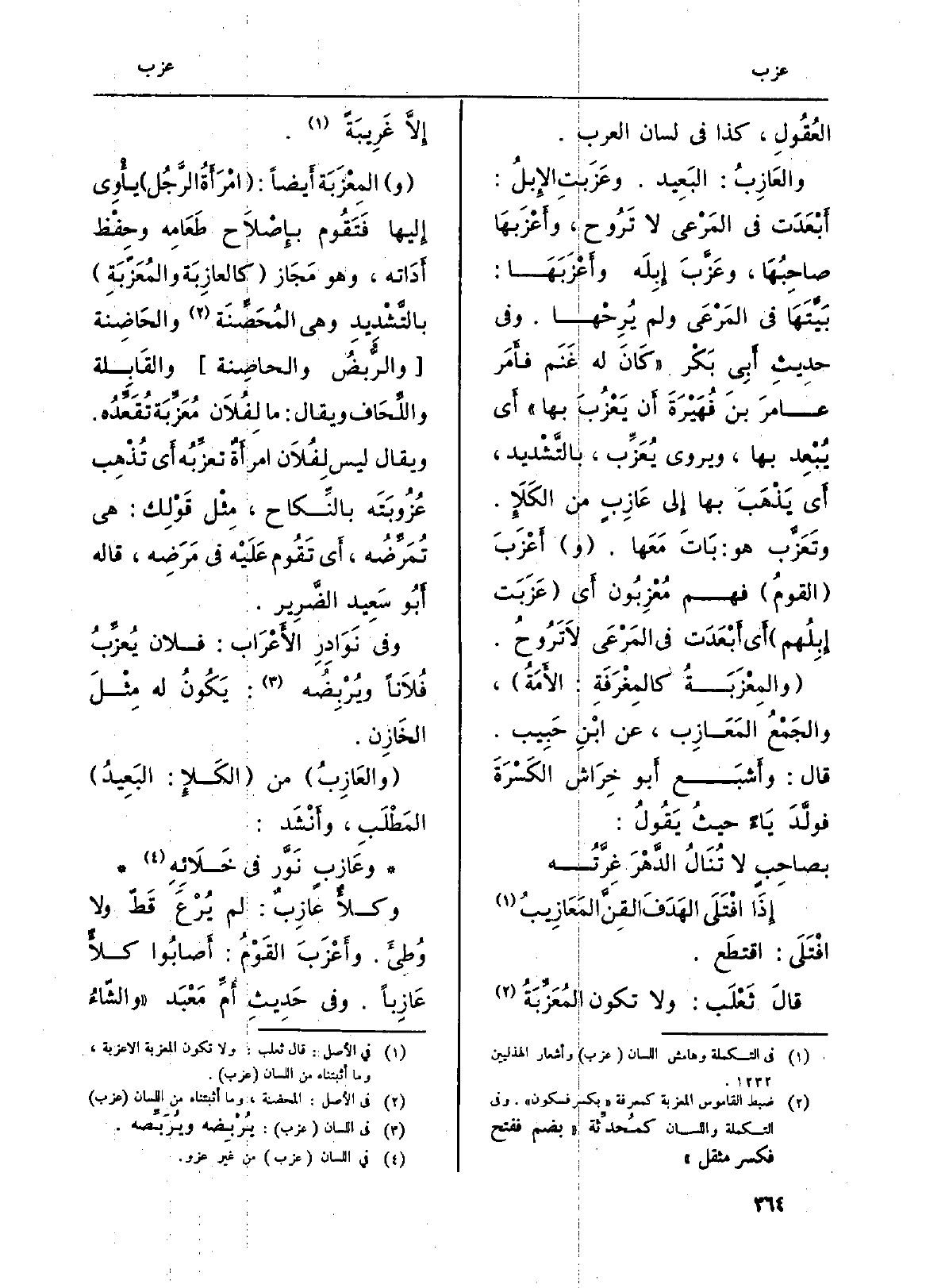 قالَ ثَعْلَب: وَلَا تكون المُعَزِّبَةُ إِلَّا غَرِيبَةً.