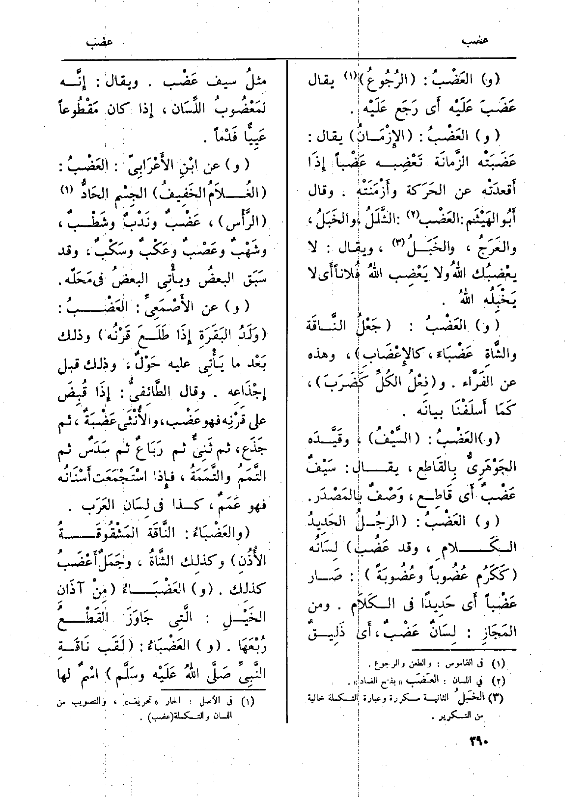 (و) العَضْبُ: (الرجُلُ الحَدِيدُ الكَلامِ، وَقد عَضُب) لِسَانُه (كَكَرُم عُضُوباً وعُضُوبَةً) : صَار عَضْباً أَي حَدِيداً فِي الكَلَام. وَمن المَجَازِ: لِسَانٌ عَضْبٌ، أَي ذَلِيقٌ مِثلُ سيف عَضْب. وَيُقَال: إِنَّه لمَعْضُوبُ اللِّسَان، إِذا كَانَ مَقْطُوعاً عَيِبًّا فَدْماً.