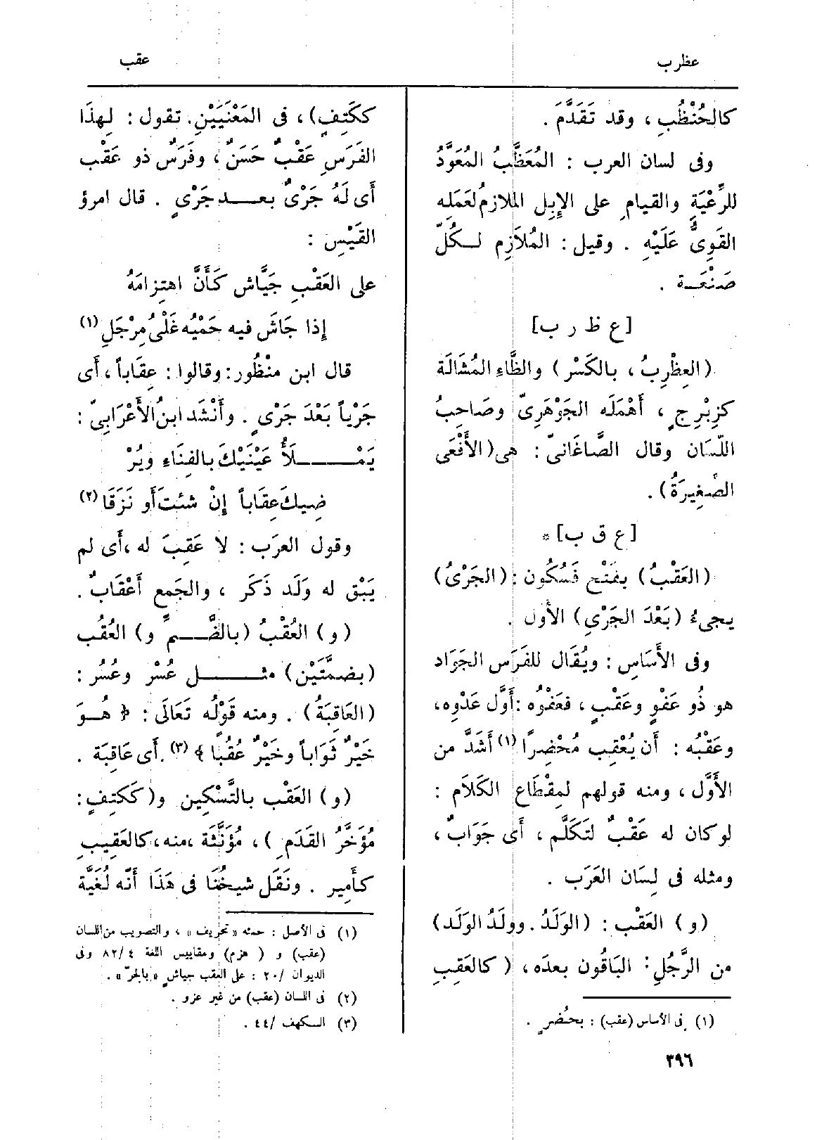 قَالَ ابْن منْظُور: وَقَالُوا: عِقَاباً، أَي جَرْياً بَعْدَ جَرْيٍ. وأَنْشَد ابنُ الأَعْرَابِيّ: