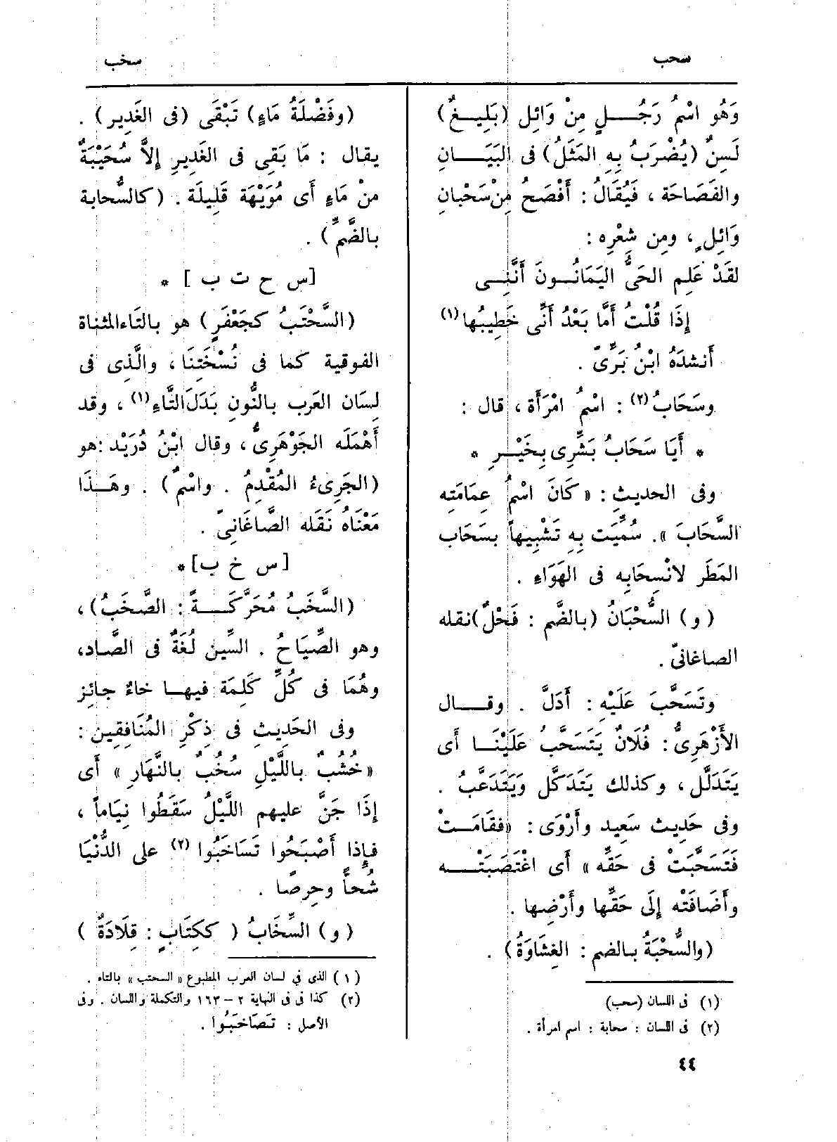وسَحَابُ: اسْمُ امْرَأَة، قَالَ:
