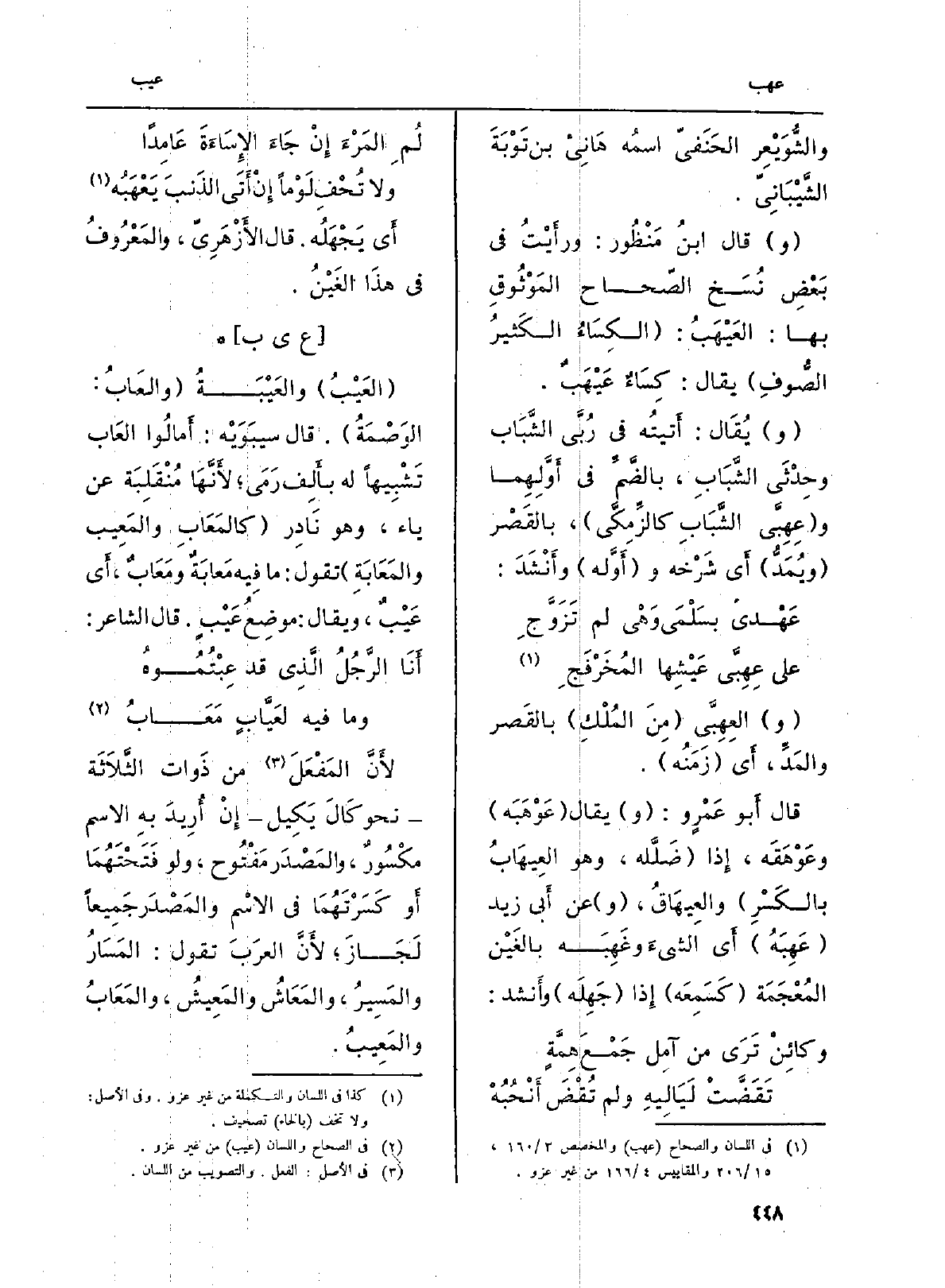والشُّوَيْعَر الحَنَفيّ اسمُه هَانِىء بن تَوحبَةَ الشَّيْبَانِيّ (و) قَالَ ابنُ مَنْظُور: ورأَيْتُ فِي بَعْضِ نُسَخ الصّحاح المَوْثُوقِ بهَا: العَيْهَبُ: (الكِسَاءُ الكَثيرُ الصُّوفِ) يُقَال: كِسَاءٌ عَيْهَبُ.