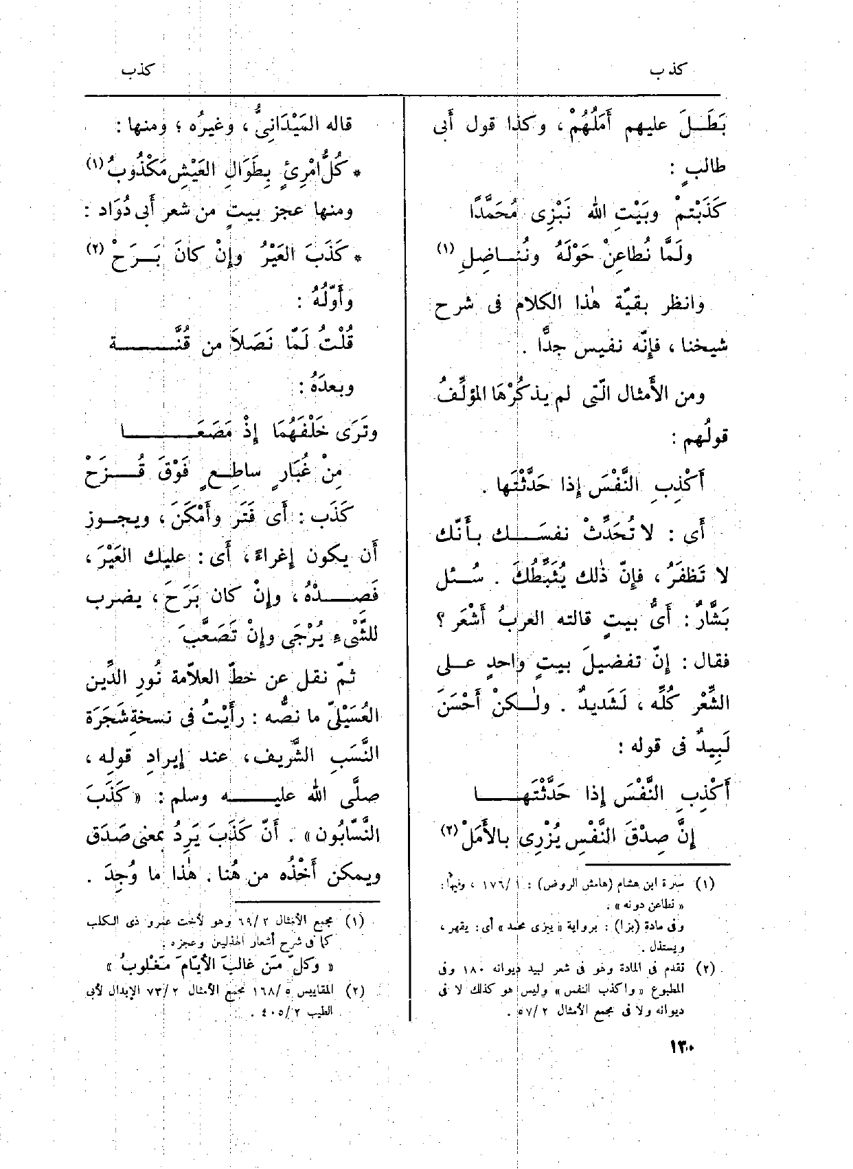 ثمّ نقل عَن خطّ العلاّمة نُورِ الدِّين العُسَيْليّ مَا نصُّه: رأَيْتُ فِي نسخةِ شَجَرَة النَّسَبِ الشَّريف، عِنْد إِيرادِ قولِه، صلى الله عَلَيْهِ وَسلم (كَذَبَ النَّسّابُون) . أَنّ كَذَبَ يَرِدُ بِمَعْنى صَدَق وَيُمكن أَخْذُه من هُنا. هاذا مَا وُجِدَ.