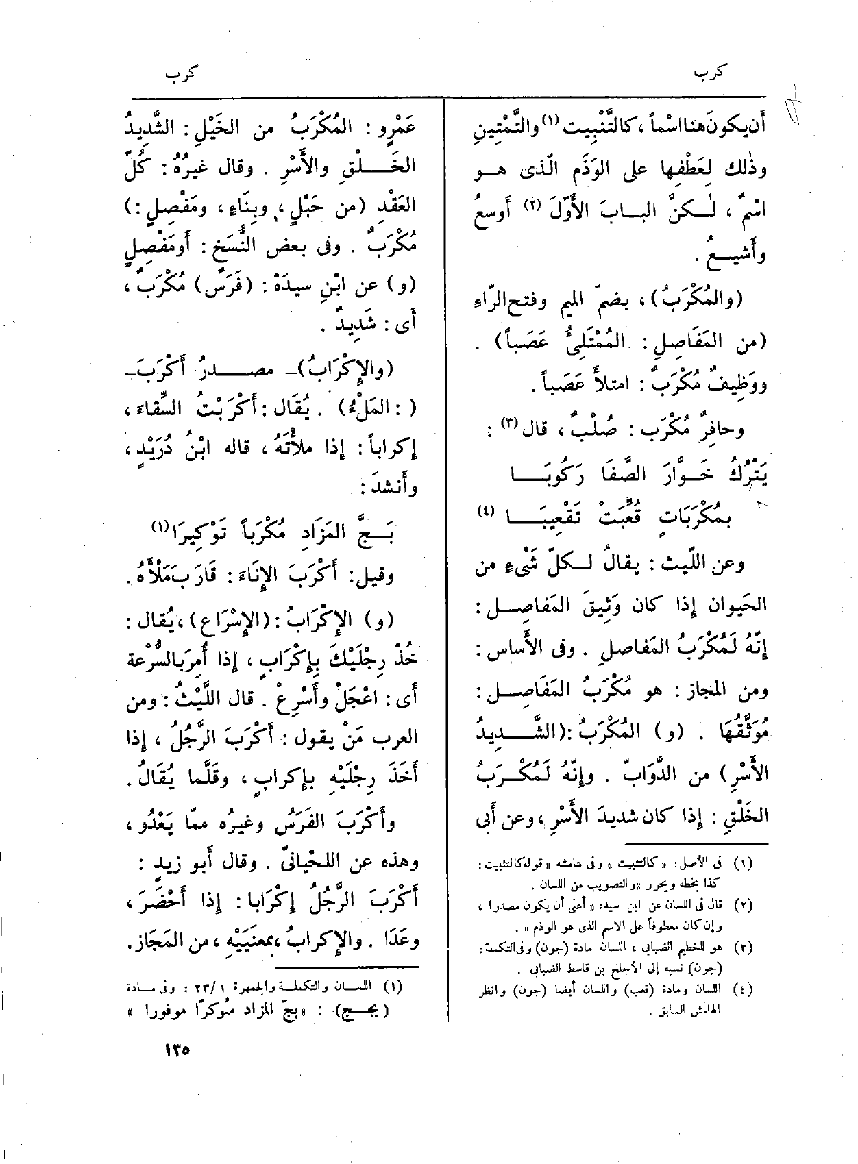 (والمُكْرَبُ) ، بضمّ الْمِيم وَفتح الرّاءِ (من المَفَاصِلِ: المُمْتَلِىءُ عَصَباً) . ووَظِيفٌ مُكْرَبٌ: امتلأَ عَصَباً.