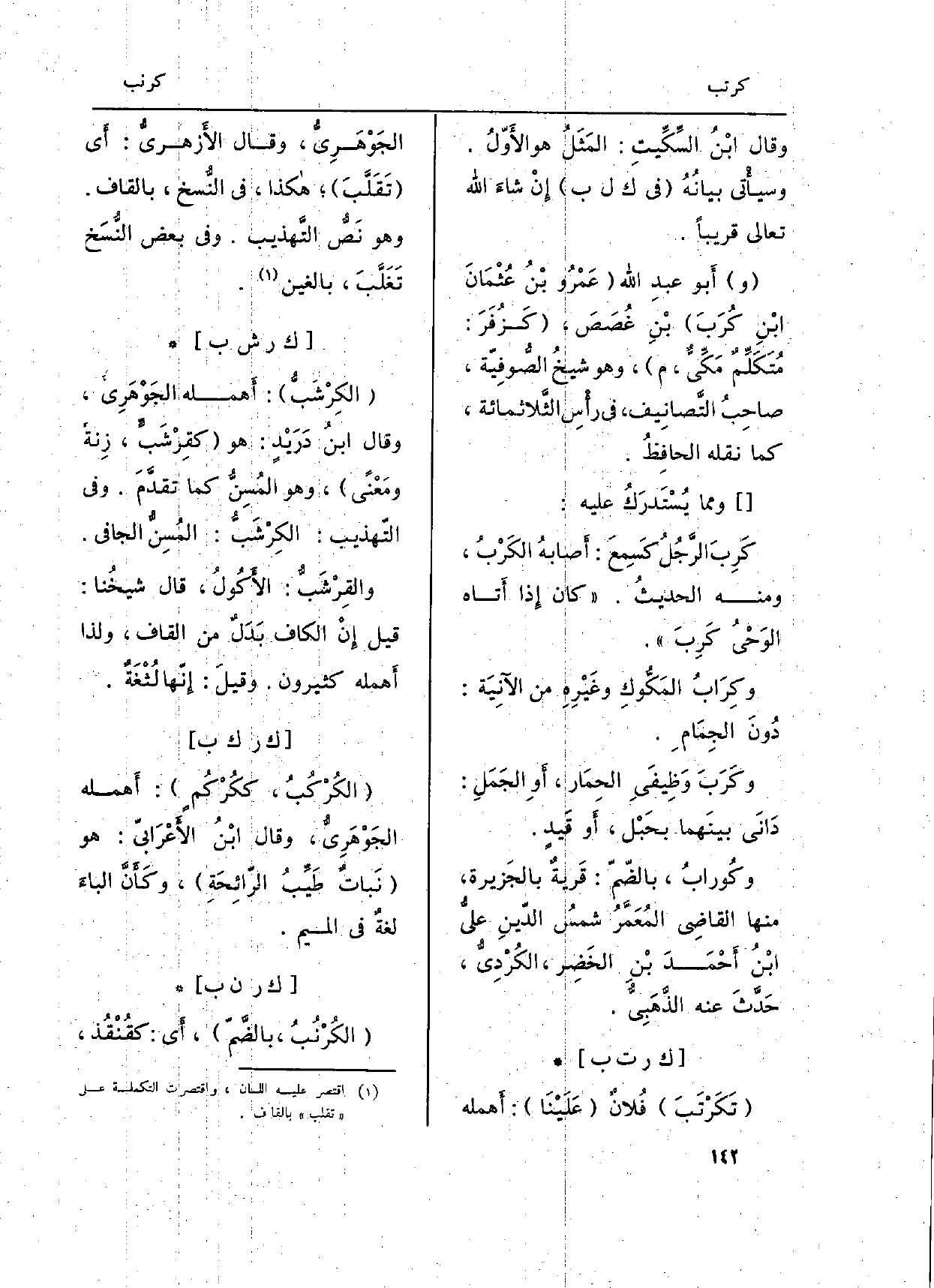 : (تَكَرْتَبَ) فُلانٌ (عَلَيْنَا) : أَهمله الجَوْهَرِيُّ، وَقَالَ الأَزهريُّ: أَي (تَقَلَّبَ) ؛ هاكذا، فِي النُّسخ، بِالْقَافِ. وَهُوَ نَصُّ التَّهذيب. وَفِي بعض النُّسَخ تَغَلَّبَ، بالغين.