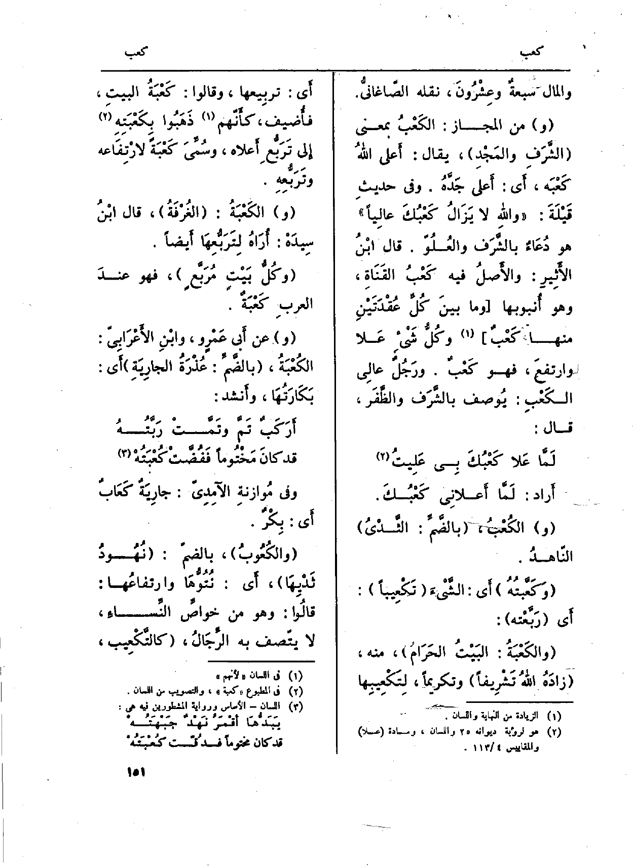 (وكُلُّ بَيْتٍ مُرَبَّعٍ) ، فَهُوَ عندَ العربِ كَعْبَةٌ.