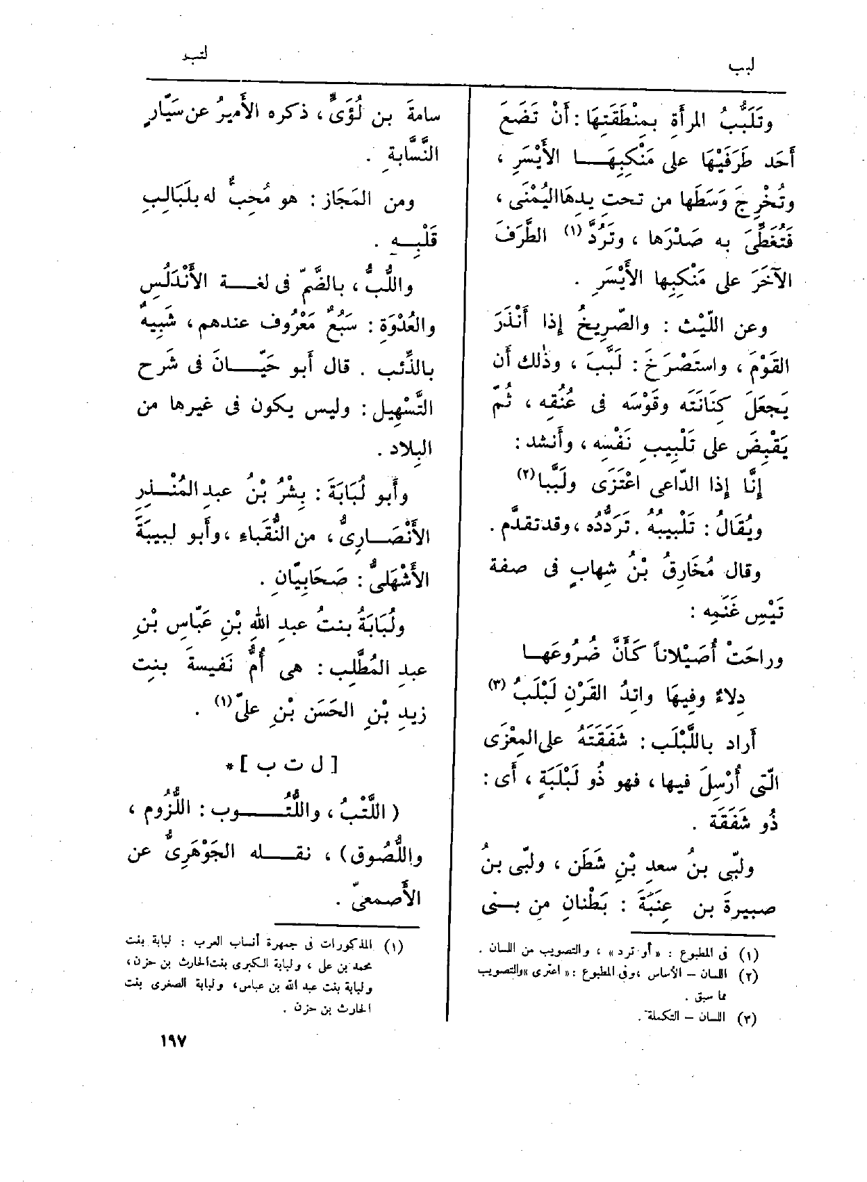 {- ولبّى بنُ سعدِ بْنِ شَطَن، ولبّى بنُ صبيرةَ بن عِنَبَةَ: بَطْنانِ من بني سامةَ بن لُؤَيَ، ذكره الأَميرُ عَن سَيّارٍ النَّسَّابةِ.