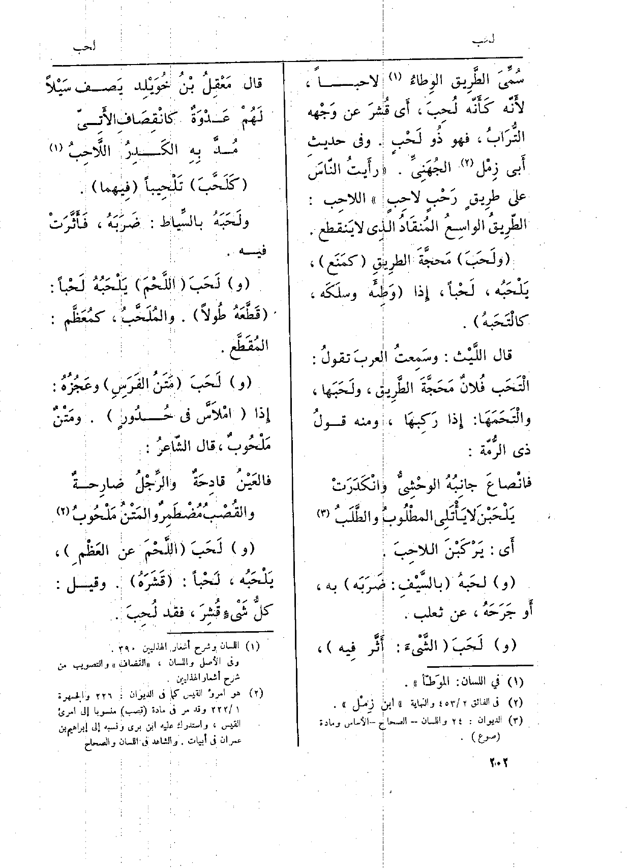 قَالَ اللَّيْث: وسَمِعتُ العربَ تقولُ: الْتَحَب فُلانٌ محَجَّةَ الطَّرِيق، ولَحَبَها، والْتَحَمَها: إِذا رَكِبَها، وَمِنْه قولُ ذِي الرُّمّة: