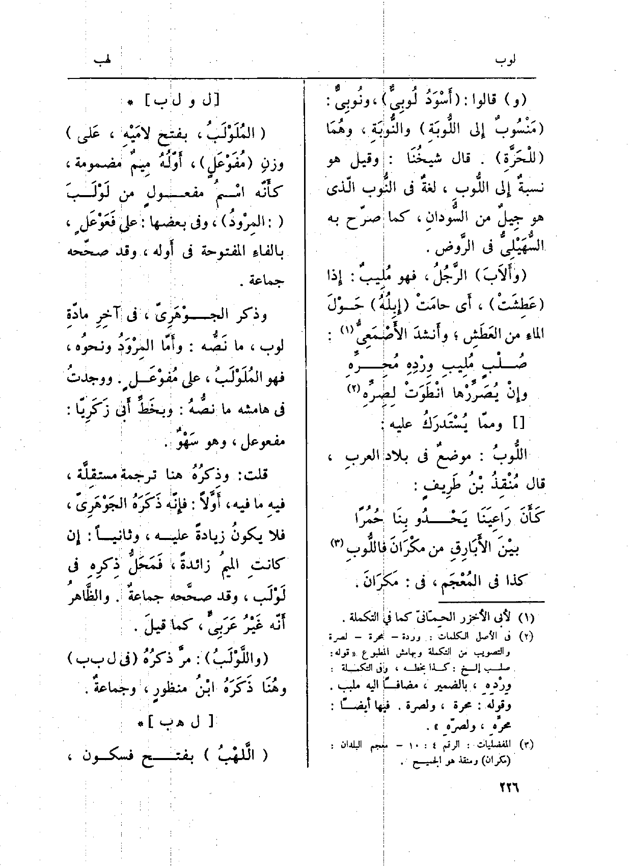 قلت: وذِكرُهُ هُنَا تَرْجَمَة مستقِلَّة، فيهِ مَا فِيهِ، أَوَّلاً: فإِنّه ذَكَرَهُ الجَوْهَرِيّ، فَلَا يكونُ زِيَادَة عَلَيْهِ، وَثَانِيا: إِن كانتِ الميمُ زَائِدَة، فَمَحَلُّ ذِكرِهِ فِي لَوْلَب، وَقد صحَّحه جماعةٌ. والظَّاهرُ أَنّه غَيْرُ عَرَبِيَ، كَمَا قيلَ.