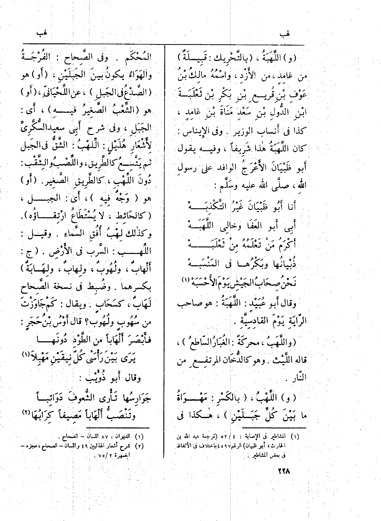 (و) اللَّهَبَةُ، (بالتَّحْرِيك: قَبِيلَةٌ) من غامِدٍ، من الأَزْدِ، واسْمُهُ مالِكُ بْنُ عَوْفِ بْنِ قُريعِ بْنِ بَكْرِ بْن ثَعْلَبَةَ بْنِ الدُّولِ بْنِ سَعْدِ مَناةَ بْنِ غامِدٍ، كَذَا فِي أَنساب الْوَزير. وَفِي الإِيناس: كَانَ اللَّهَبَةُ هاذا شَرِيفاً، وَفِيه يَقُول أَبو ظَبْيَانَ الأَعْرَجُ الْوَالِد على رسولِ اللَّهِ، صلى الله عَلَيْهِ وَسلم