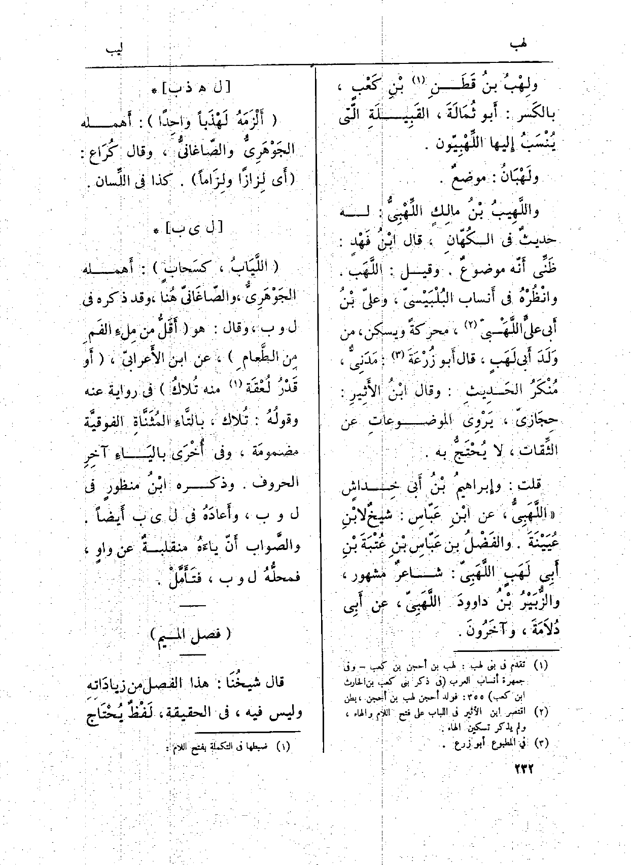 واللَّهِيبُ بْنُ مالِكٍ اللِّهْبِيُّ: لَهُ حديثٌ فِي الكُهّانِ، قَالَ ابْنُ فَهْدٍ: ظَنِّي أَنّه موضوعٌ. وَقيل: اللَّهَب. وانْظُرْهُ فِي أَنساب البُلْبَيْسيّ، وعليّ بْنُ أَبي عليَ اللَّهَبيّ، محركةً ويسكن، من وَلَدَ أَبي لَهَبٍ، قَالَ أَبو زُرْعَةَ: مَدَنِيٌّ، مُنْكَرُ الحَدِيثِ. وَقَالَ ابْنُ الأَثِيرِ: حِجَازيّ، يَرْوِي الموضوعاتِ عَن الثِّقات، لَا يُحْتَجُّ بِهِ.