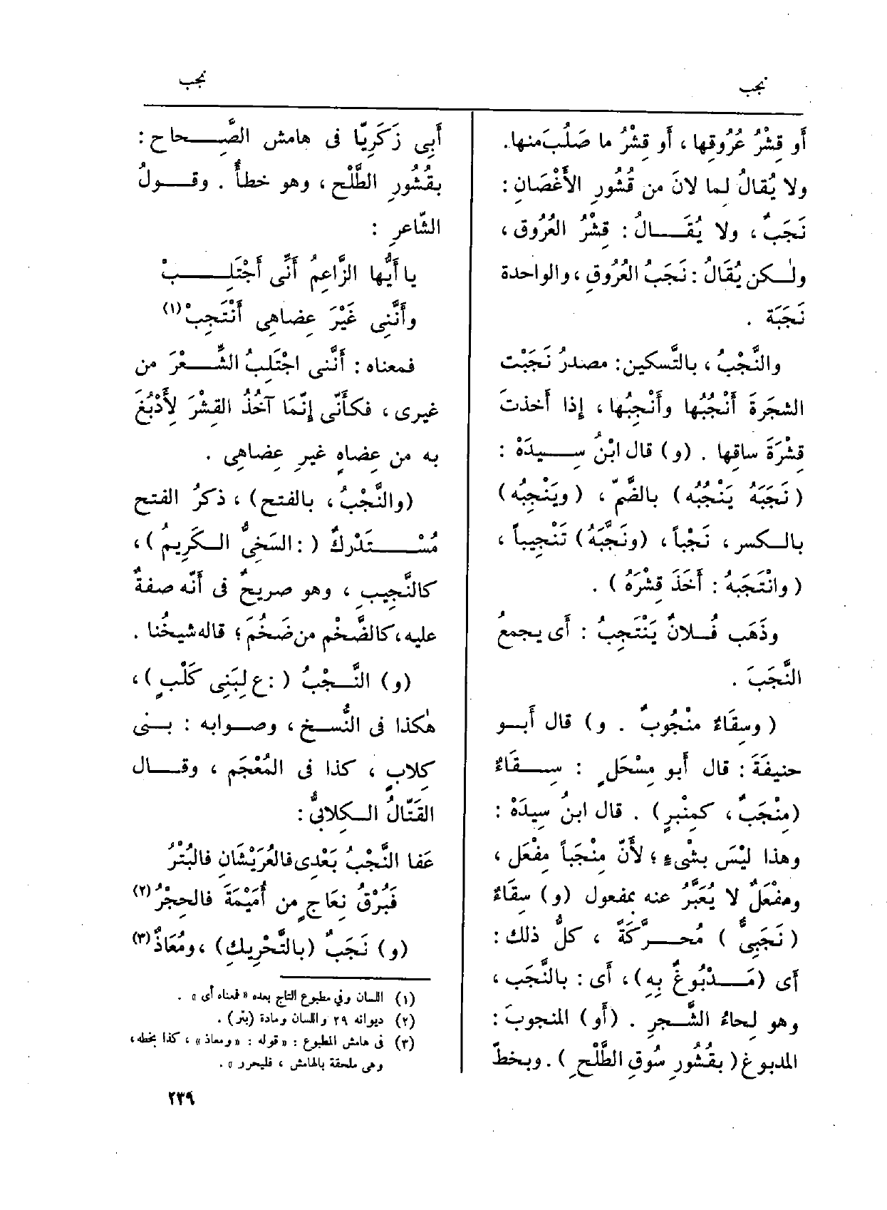 (وسِقَاءٌ مَنْجُوبٌ. و) قَالَ أَبو حنيفَةَ: قَالَ أَبو مِسْحَلٍ: سِقَاءٌ (مِنْجَبٌ، كمِنْبرٍ) . قَالَ ابنُ سِيدَهْ: وَهَذَا لَيْسَ بشيْءٍ؛ لأَنّ مِنْجَباً مِفْعَل، ومفْعَلٌ لَا يُعَبَّرُ عَنهُ بمفعول (و) سِقَاءٌ (نَجَبِيٌّ) مُحَرَّكَةً، كلُّ ذَلِك: أَي (مَدْبُوغٌ بِهِ) ، أَي: بالنَّجَب، وَهُوَ لِحاءُ الشَّجرِ. (أَو) المنجوبُ: المدبوغ (بقُشُورِ سُوقِ الطَّلْحِ) . وبخطّ أَبِي زَكَرِيّا فِي هَامِش الصَّحاح: بقُشُورِ الطَّلْح، وَهُوَ خطأٌ. وقولُ الشّاعرِ: