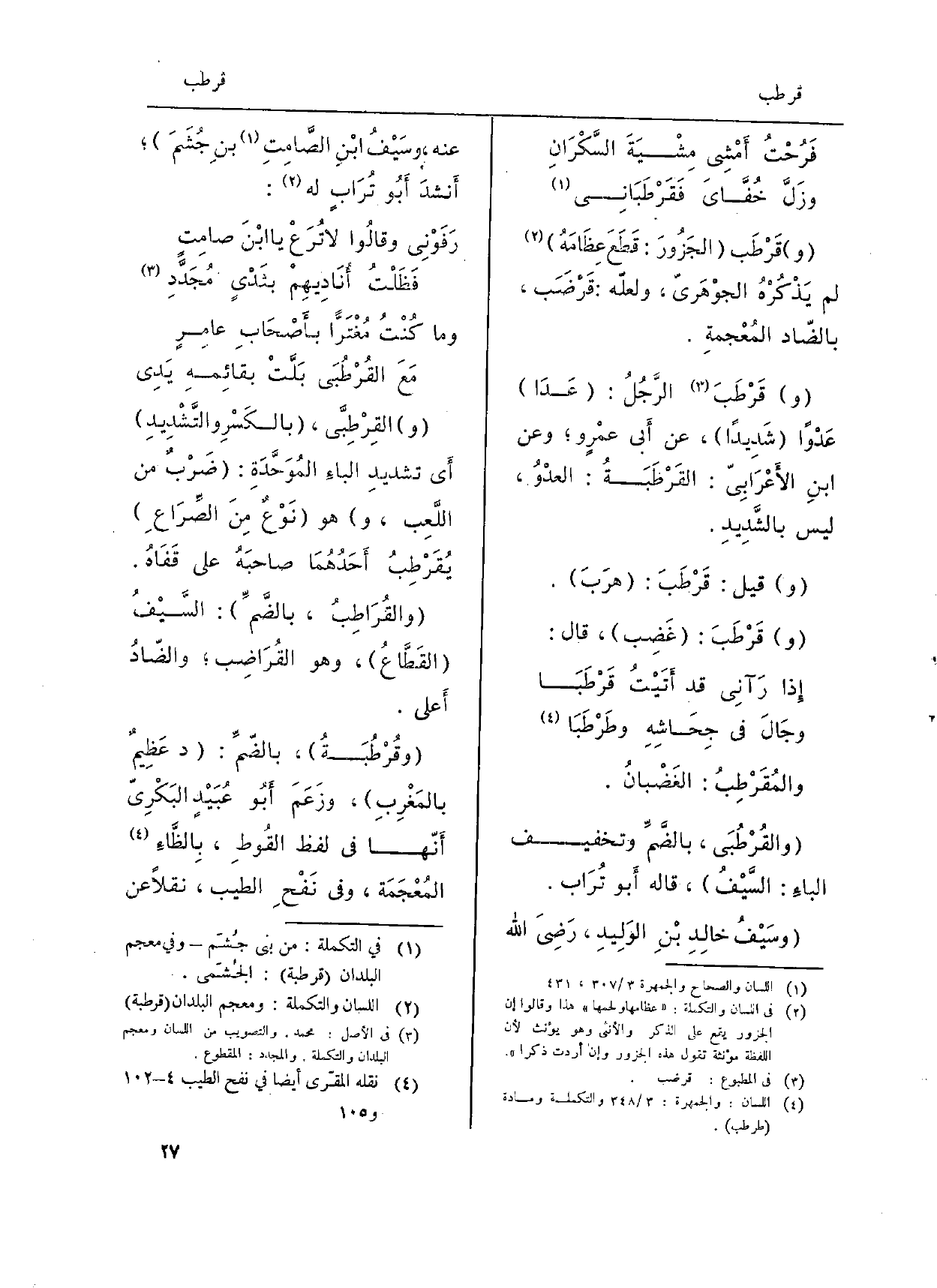 (والقُرْطُبَى، بالضَّمِّ وَتَخْفِيف الباءِ: السَّيْفُ) ، قَالَه أَبو تُرَاب.