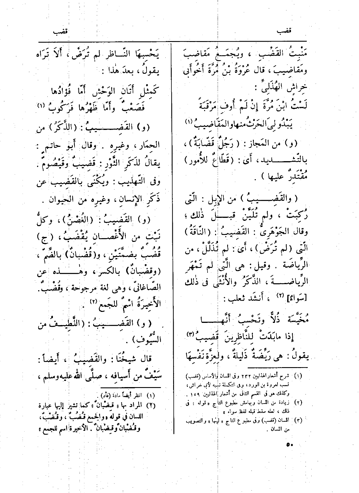 مَنْبِتُ القَضْبِ، ويُجمَعُ مَقاضِبَ ومَقاضِيبَ، قَالَ عُرْوَةُ بْنُ مُرَّةَ أَخُو أَبي خِراشٍ الهُذَليِّ: