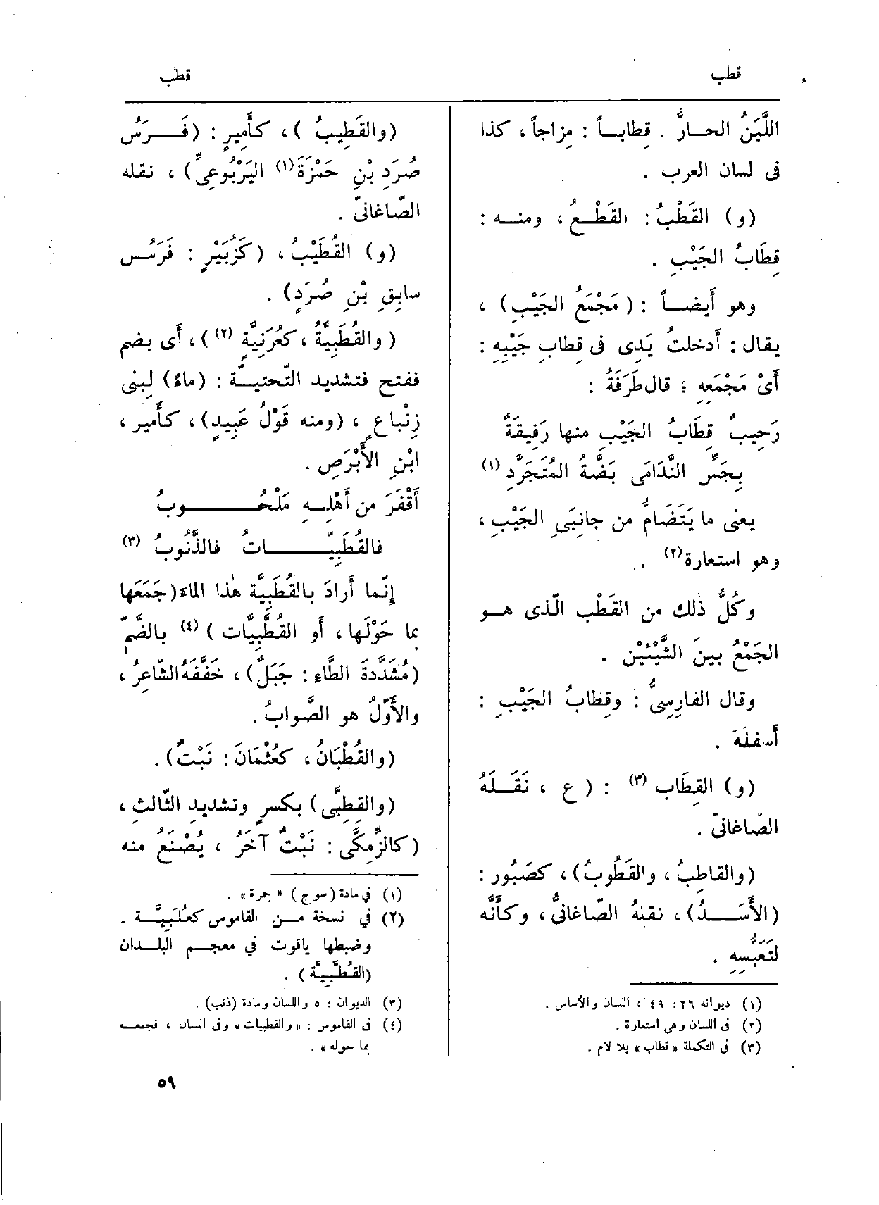 وَقَالَ الفارِسِيُّ: وقِطابُ الجَيْبِ: أَسفَلُهُ.