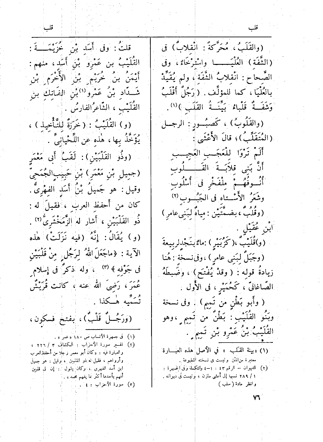 قلتُ: وَفِي أَسَدِ بْنِ خُزَيْمَةَ: القُلَيْبُ بن عَمْرِو بْنِ أَسَد، مِنْهُم: أَيْمَنُ بنُ خُرَيْمِ بْنِ الأَخْرَمِ بْنِ شَدّادِ بْنُ عَمْرو بْنِ الفَاتِكِ بنِ القُلَيْبِ، الشّاعرُ الفارسُ.