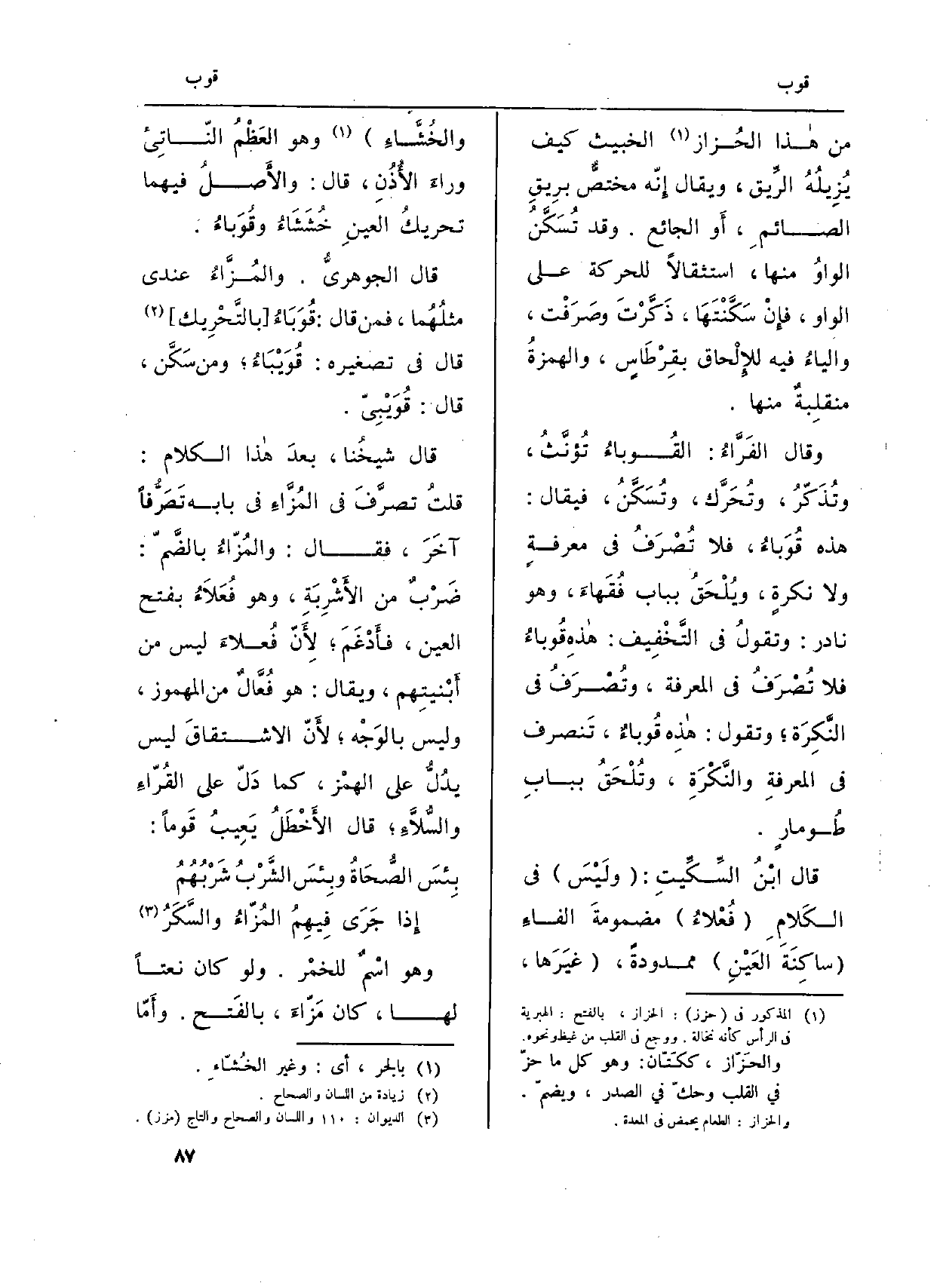 قَالَ الجوهريُّ: والمُزَّاءُ عِنْدِي مثلُهُما، فَمن قَالَ: قُوَبَاءُ بالتَّحْرِيك قَالَ فِي تصغيره: {قُوَيْبَاءُ؛ وَمن سَكَّن، قَالَ:} - قُوَيْبِيّ.