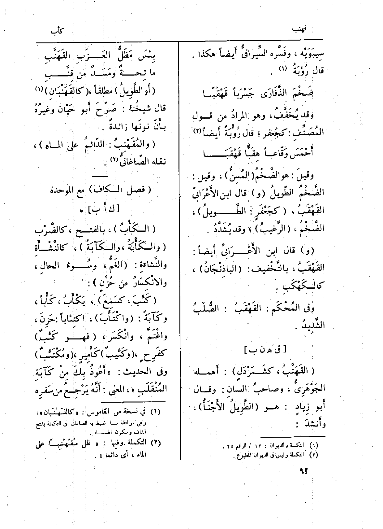 (فصل الْكَاف مَعَ الْمُوَحدَة)