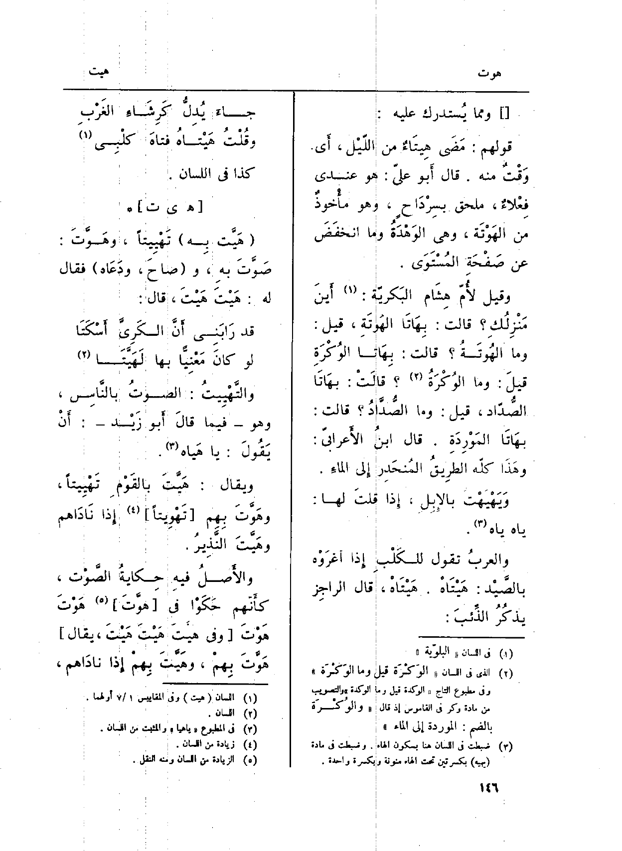 والأَصلُ فيهِ حِكايةُ الصَّوْت، كأَنّهم حَكَوْا فِي (هوَّتَ) هَوْتَ هَوْتَ (وَفِي {هَيَّتَ} هَيْتَ! هَيْتَ، يُقَال) هَوَّتَ بِهمْ، وهَيَّتَ بِهمْ إِذا نادَاهم،