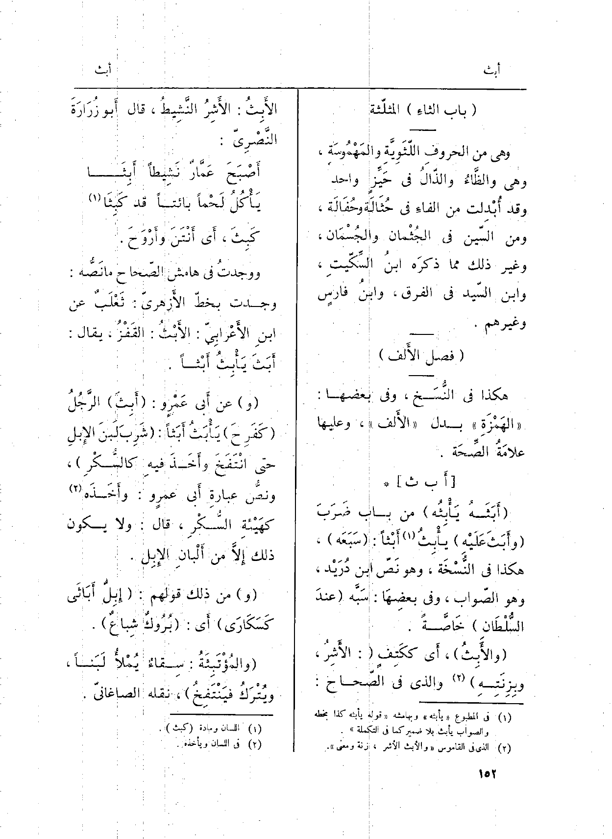 ووجدتُ فِي هَامِش الصّحاح مَا نَصُّه: وجدت بخطّ الأَزهريّ: ثَعْلَبٌ عَن ابنِ الأَعْرابِيّ: {الأَبْثُ: القَفْزُ، يُقَال: أَبَثَ يَأْبِثُ أَبْثاً.