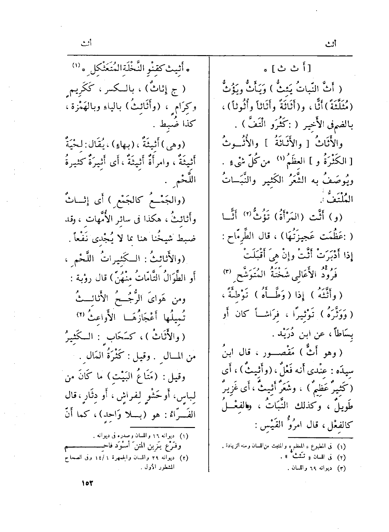 ( {والأَثائِثُ: الكَثِيراتُ اللَّحْمِ، أَو الطِّوَالُ التَّامّاتُ مِنْهُنّ) قَالَ رؤبة: