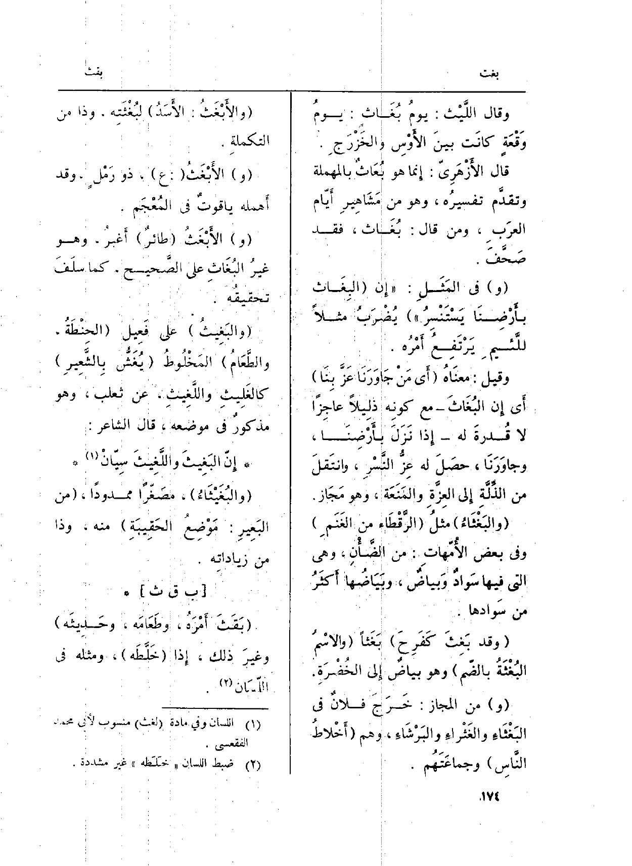 (والبَغِيثُ) على فَعِيل (الحِنْطَةُ، والطَّعَامُ) المَخْلُوطُ (يُغَشُّ بِالشَّعِيرِ) كالغَلِيثِ، واللَّغِيثِ، عَن ثَعْلَب، وَهُوَ مذكورٌ فِي مَوْضِعه، قَالَ الشَّاعِر: