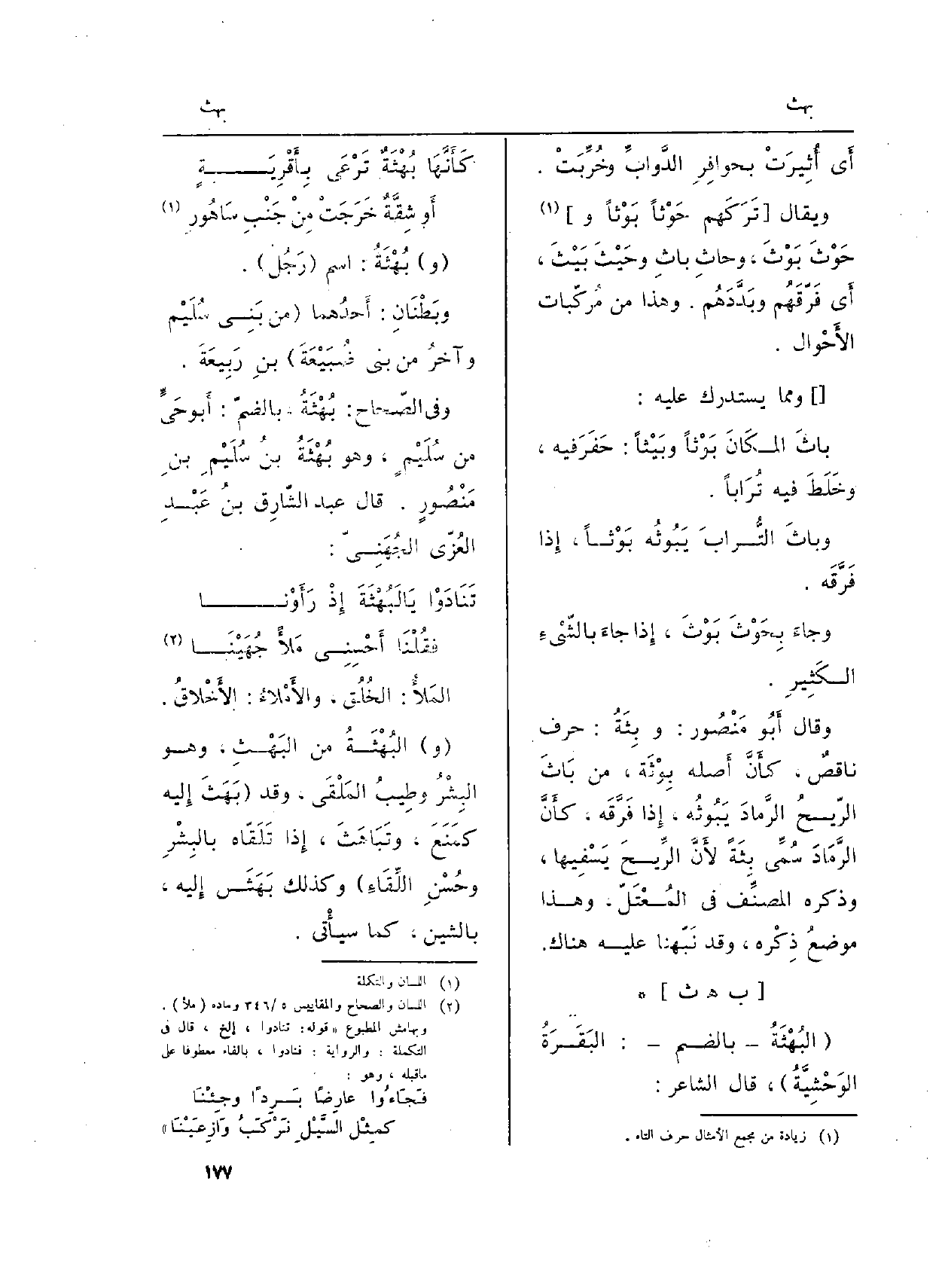 : (البُهْثَةُ بِالضَّمِّ: البَقَرَةُ الوَحْشِيَّةُ) ، قَالَ الشَّاعِر: