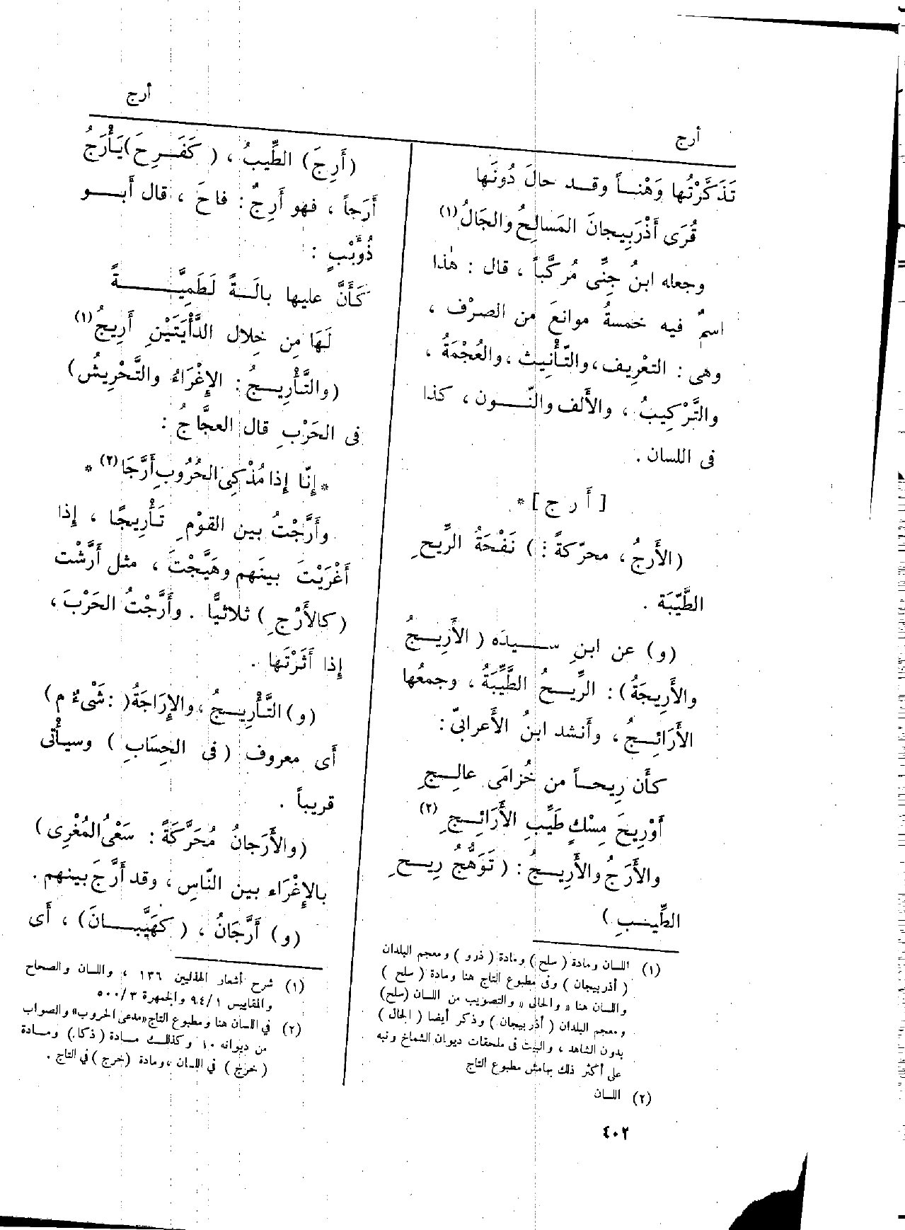 : (} الأَرجُ، محرّكةً:) نَفْحَةُ الرِّيحِ الطَّيّبَة.