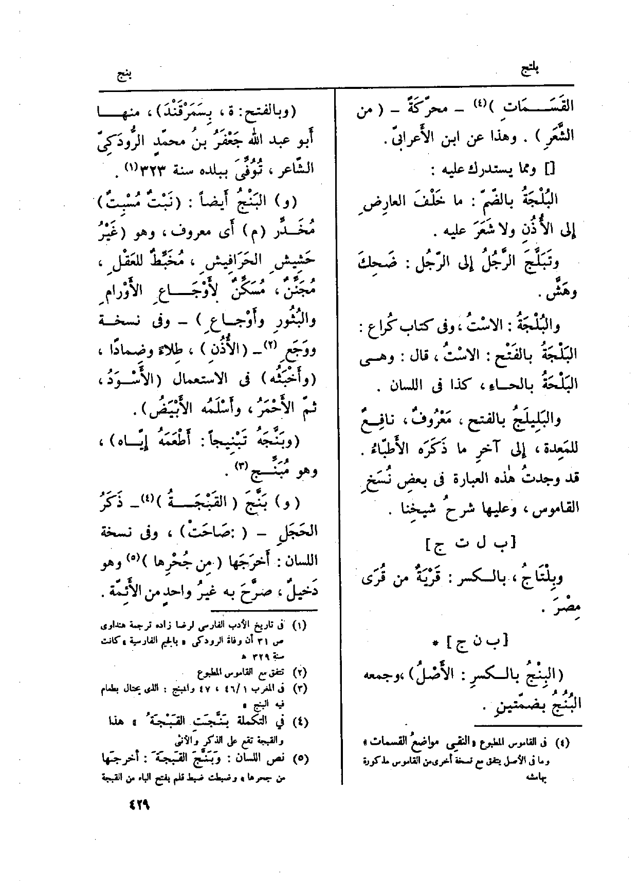 البُلْجَةُ بالضّمّ: مَا خَلْفَ العارِضِ إِلى الأُذُنِ وَلَا شَعَرَ عَلَيْهِ.