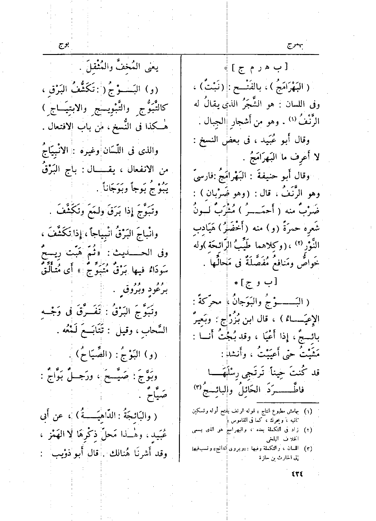 : (البَهْرَامَجُ) ، بالفَتْح: (نَبْتٌ) ، وَفِي اللِّسَان: هُوَ الشَّجَرُ الَّذِي يقالُ لَهُ الرَّنْفُ، وَهُوَ من أَشجارِ الجِبال.