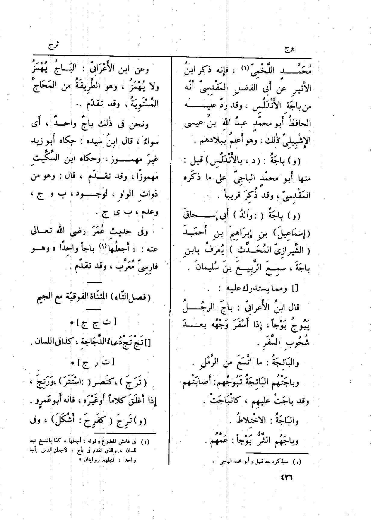 (فصل التّاء) المثنّاة الفوقيّة مَعَ الْجِيم)
