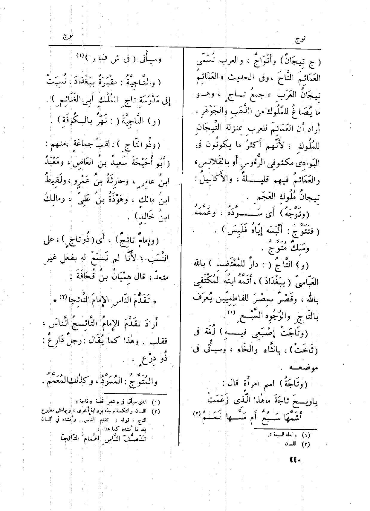 } والمُتَوَّجُ: المُسَوَّدُ، وكذالك المُعَمَّمُ.