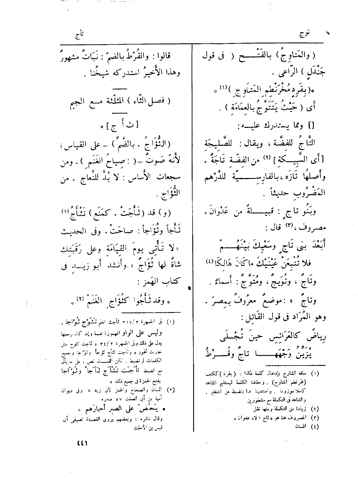 : (ا} لثُّؤَاجُ، بالضَّمِّ) على الْقيَاس؛ لأَنّه صَوتٌ (: صِياحُ الغَنَمِ) . وَمن سجعات الأَساس: لَا بُدَّ للنِّعاج، من {الثُّؤَاج.