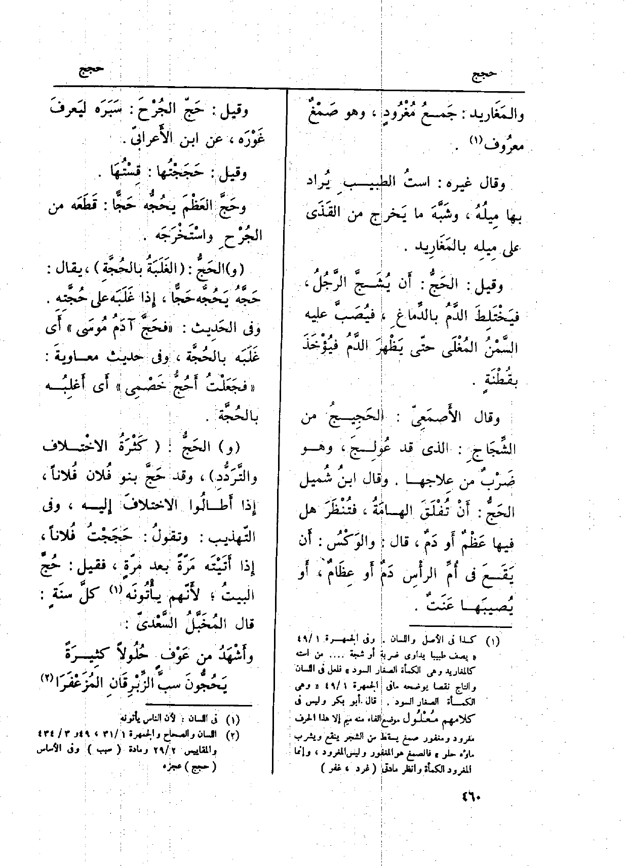 وَقيل: حَجّ الجُرْحَ: سَبَرَه ليَعرف غَوْرَه، عَن ابْن الأَعرابيّ.